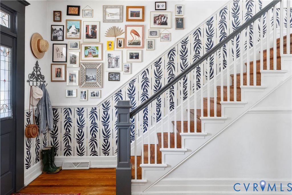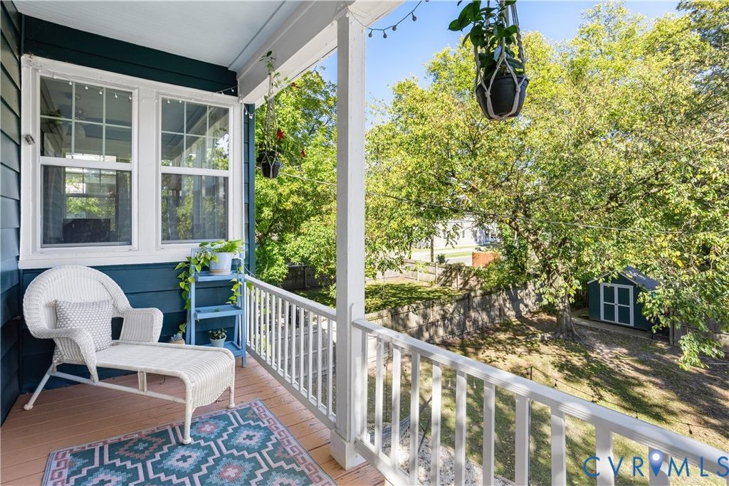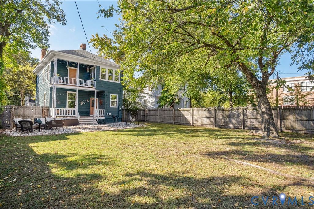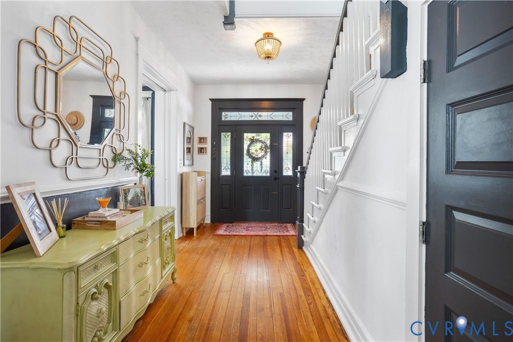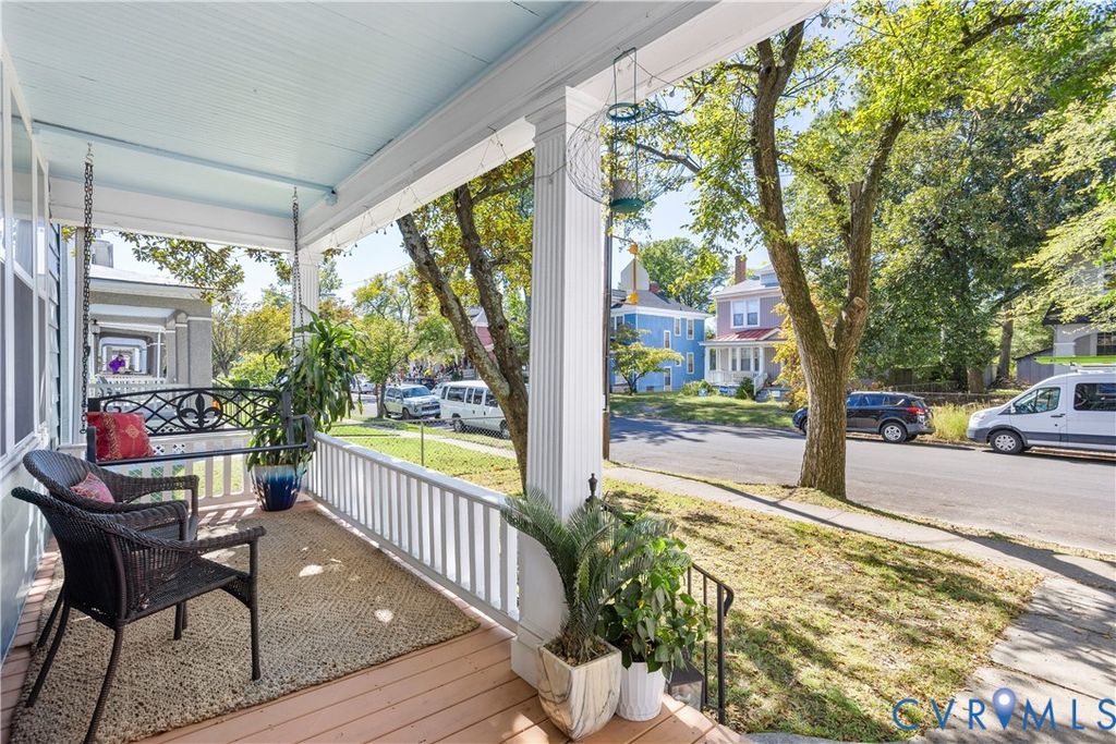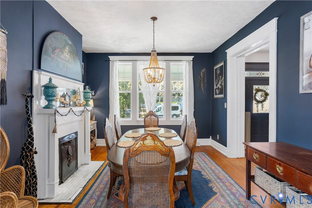 Welcome home to 3021 Fendall Avenue, a classic 1920's Four Square that perfectly blends southern charm, timeless character, and a touch of bold personality. Owned by a local designer, this 4 BR, 1.5 BA gem in RVA's sought-after Brookland Park neighborhood will have you falling in love. Stroll up to the freshly painted, covered front porch, complete with a charming porch swing, and step into the spacious foyer. The original banister and newel post set the tone for what's inside - 1,620 sq/ft of character-filled living space featuring heart pine floors, light-filled transoms, Crystal doorknobs and historic details throughout. To your right, the formal dining room shines with a beaded chandelier, decorative fireplace, and large windows that fill the space with natural light. Flowing into the rear living room, you'll find a second soapstone fireplace, ceiling fan, and peaceful views of the backyard. The renovated kitchen preserves the home's original brick as a striking focal point and features stainless steel appliances, granite countertops, and shaker-style cabinetry. Just off the kitchen, the laundry room provides extra storage, side-by-side washer/dryer, and an electric water heater. Back out to the foyer you will find the moody renovated 1/2 bath under the stairs. Upstairs you will find the front primary bedroom offers two closets, hardwood floors, and a third fireplace. A smaller front bedroom makes the perfect office, nursery, or additional closet as shown. The third, spacious bedroom opens to a private rear balcony, just across from the updated full bath. The fourth bedroom or flex space is bright and serene, overlooking the backyard. Outside, your fully fenced backyard is made for relaxing and entertaining, complete with a deck, bistro lights, fire pit, and storage shed. Thoughtfully cared for and full of charm, this Brookland Park beauty is ready to welcome you home.