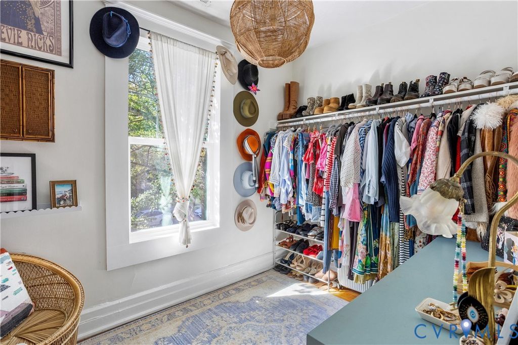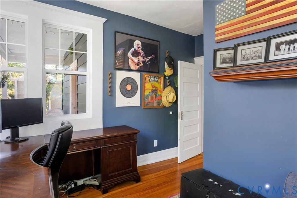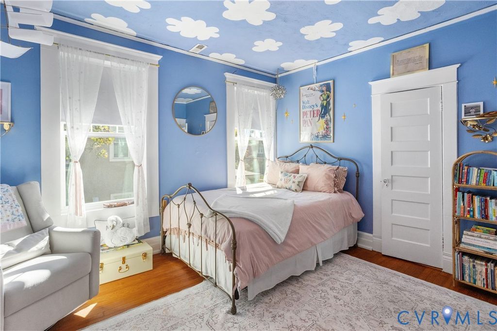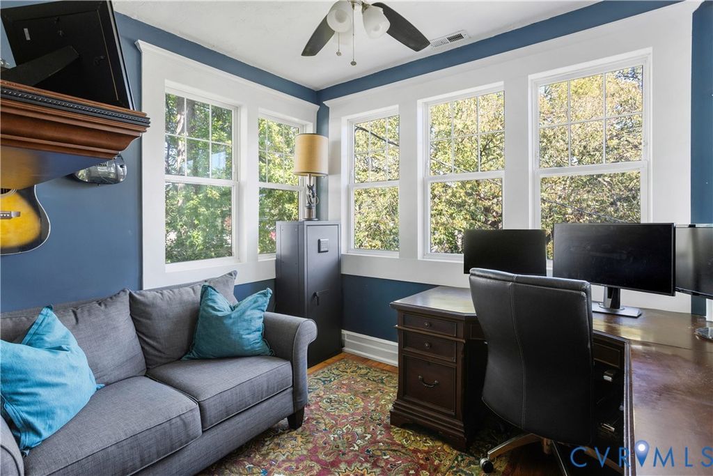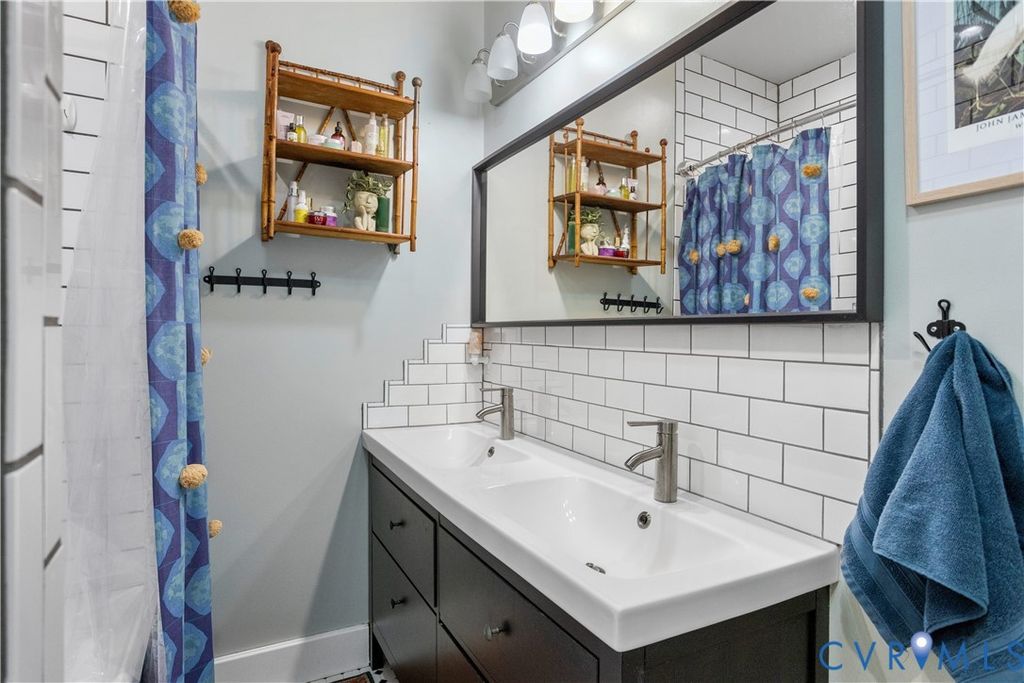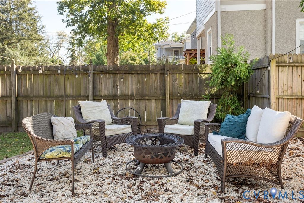 Welcome home to 3021 Fendall Avenue, a classic 1920's Four Square that perfectly blends southern charm, timeless character, and a touch of bold personality. Owned by a local designer, this 4 BR, 1.5 BA gem in RVA's sought-after Brookland Park neighborhood will have you falling in love. Stroll up to the freshly painted, covered front porch, complete with a charming porch swing, and step into the spacious foyer. The original banister and newel post set the tone for what's inside - 1,620 sq/ft of character-filled living space featuring heart pine floors, light-filled transoms, Crystal doorknobs and historic details throughout. To your right, the formal dining room shines with a beaded chandelier, decorative fireplace, and large windows that fill the space with natural light. Flowing into the rear living room, you'll find a second soapstone fireplace, ceiling fan, and peaceful views of the backyard. The renovated kitchen preserves the home's original brick as a striking focal point and features stainless steel appliances, granite countertops, and shaker-style cabinetry. Just off the kitchen, the laundry room provides extra storage, side-by-side washer/dryer, and an electric water heater. Back out to the foyer you will find the moody renovated 1/2 bath under the stairs. Upstairs you will find the front primary bedroom offers two closets, hardwood floors, and a third fireplace. A smaller front bedroom makes the perfect office, nursery, or additional closet as shown. The third, spacious bedroom opens to a private rear balcony, just across from the updated full bath. The fourth bedroom or flex space is bright and serene, overlooking the backyard. Outside, your fully fenced backyard is made for relaxing and entertaining, complete with a deck, bistro lights, fire pit, and storage shed. Thoughtfully cared for and full of charm, this Brookland Park beauty is ready to welcome you home.