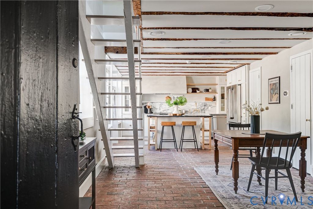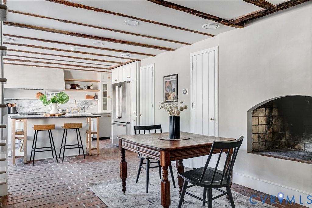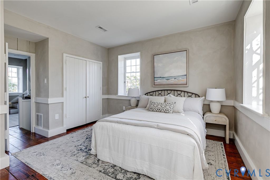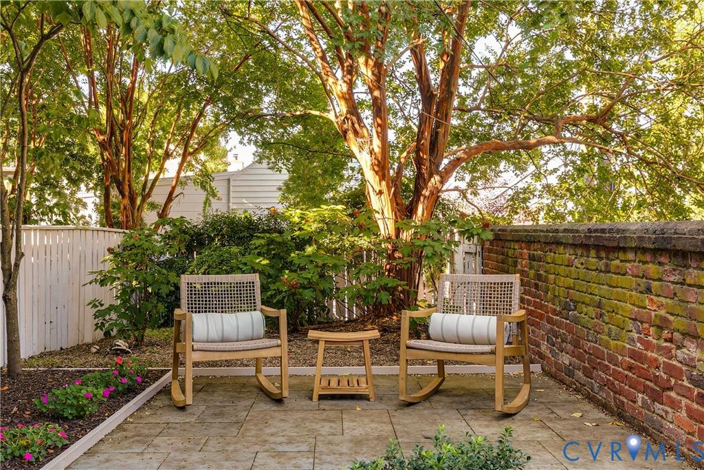 Here's your chance to call one of the most charming and historic buildings in Richmond home: the circa 1809 John Adams Double House. Located directly across the street from the national landmark St. John's Church, this light-filled structure sits on a corner lot in one of the most desirable sections of Church Hill. All four levels have been carefully updated and restored, with particular attention given to the original historic features. The gorgeous eat-in kitchen awaits downstairs in the walkout English basement. Flooded with light from the Victorian storefront this is one of the most unique entertaining spaces you'll find in a home. The well crafted and functional kitchen has contrasting marble and granite countertops, SS Cafe appliances, custom range hood, oak shelving and brass hardware. Directly off of the dining area is a serene walled garden with brick and bluestone patios that enable an indoor/outdoor lifestyle that's hard to find in the city. The equally serene primary suite can be found on the top level, with hand-hewn wood beams and generous closet space. Marble floors, a beautiful deep green shower and brass fixtures combine to create a stunning en-suite bathroom, but the real stunner is the seasonal view of the James River from the window. On the second level, you'll find a lovely bedroom with decorative fireplace, a spacious library or home office with a wood-burning fireplace and built-ins, and a full bath with marble floors and shower tile, custom wallpaper, and brass fixtures. In the heart of all of the charming parks, historic architecture and dining Church Hill has to offer. Single family use only. Credit & background checks, min. credit score 650, solid rental history + income verification. $50 application fee per applicant over the age of 18. Pets considered on a case-by-case basis, additional monthly fees and non-refundable upfront fees apply. Renters insurance required. All other utilities and snow removal are the responsibility of the tenant.