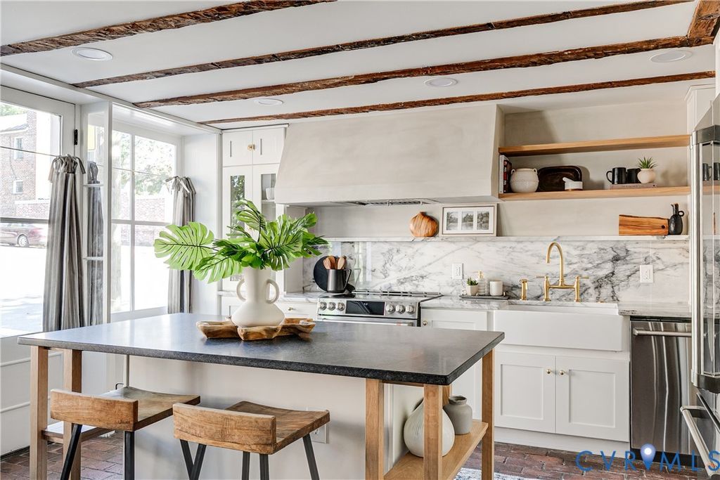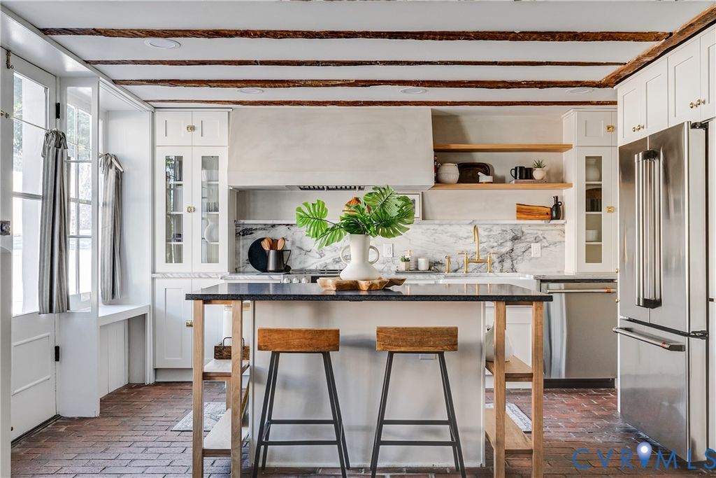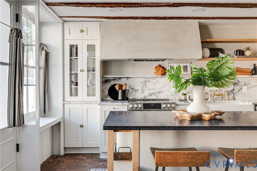 INTERIOR | Beamed Ceilings, Bookcases, Built-in Features, Eat-in Kitchen, Granite Counters, Kitchen Island, Pantry, Recessed Lighting |