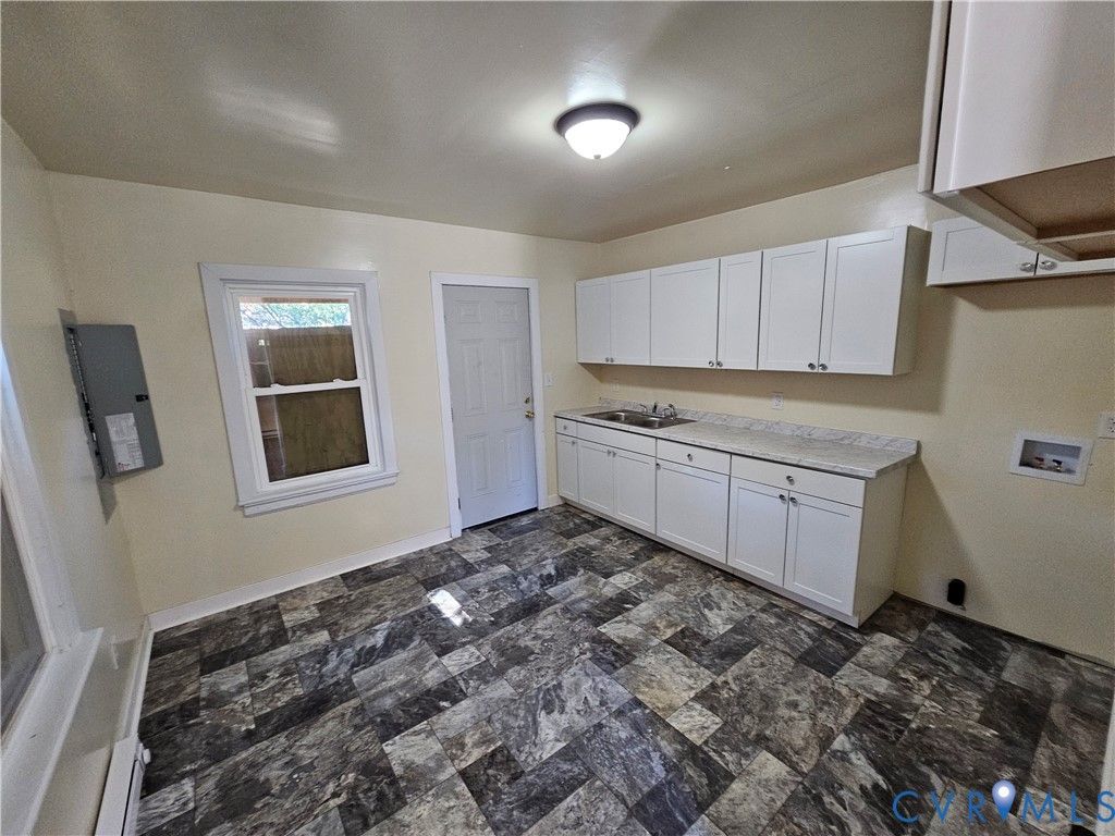Renovated 2 bedroom with stove, refrigerator, stack W/D hookups, cabinets/counter, new kitchen/bathroom flooring, sealed hardwood floors, replacement windows, new electric base heat, blinds, and fresh interior paint.