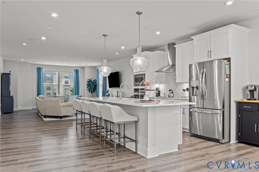 Move in Ready from 12/6/2025 ! 2450+ Sqft of Living space Like New Immaculate Home features a gourmet kitchen with Stainless Steel appliances, 12ft island with quartz countertops, Premium White Cabinets and tile backsplash. The open concept, main living area boasts an upgraded trim package, luxury plank flooring, upgraded lighting fixtures and a balcony. Also included is a SMART condo system featuring intercom, security system and video camera doorbell. The owners' suite is very spacious with a huge walk in closet. The owners' suite bathroom features dual vanities, upgraded cabinets and upgraded fixtures. The 2 secondary bedrooms are generously sized and share a full bathroom. There is also a large dog walking area. Sidewalks throughout the neighborhood give the community great walkability. Pets Allowed Trash pickup/Washer/Dryer/HOA Fees Included in Rent . Tenants should Pay for Water/Electricity/Internet.