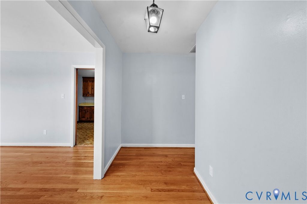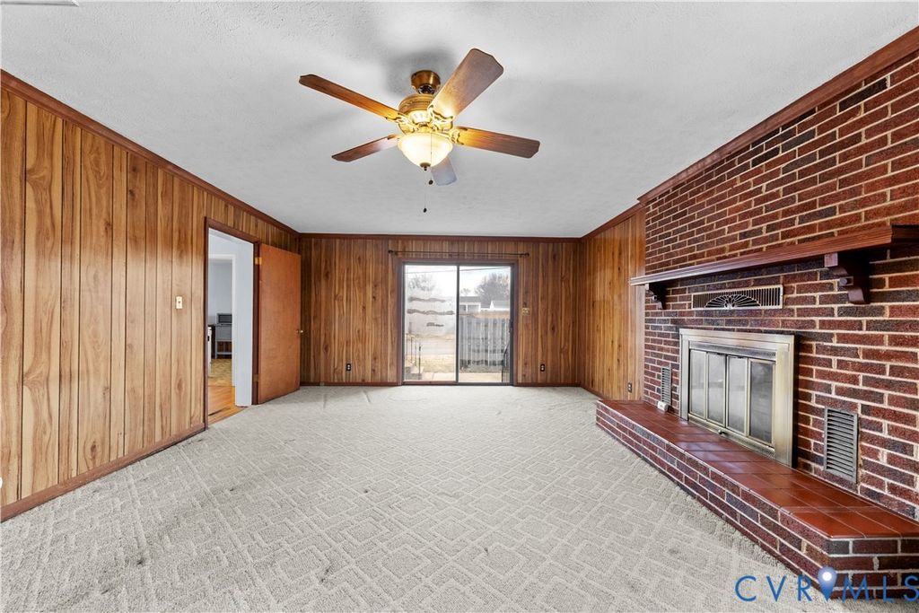 Welcome to 702 Charles Avenue, a classic brick ranch home situated on a corner lot in a quaint established Colonial Heights neighborhood. This 3-bedroom, 2-bath home offers 1,598 square feet of comfortable one-level living with hardwood floors throughout much of the home, ceiling fans, fresh interior paint, and abundant natural light. The spacious living room features hardwood flooring and a ceiling fan, while the adjacent eat-in kitchen includes wood cabinetry, vinyl flooring, and a pocket door. The kitchen flows easily into a dedicated dining area and a separate family room, creating flexible spaces for everyday living and entertaining. The family room offers carpeted flooring, a brick fireplace, ceiling fan, and sliding glass door access to the backyard. All bedrooms are generously sized with hardwood floors, closets, and ceiling fans. The home includes two full baths. A hall bath offers a tub/shower combination, while the second bath features a walk-in shower, both with updated mirrors and light fixtures. Outside, enjoy a partially fenced backyard with a small patio offering space to relax. A detached one-car garage with driveway access and additional off-street parking complete the property. Conveniently located near schools, shopping, dining, and I-95. With its solid brick construction, functional layout, and convenient location, this property offers a great opportunity as a move-in ready primary residence or investment property. Must see!