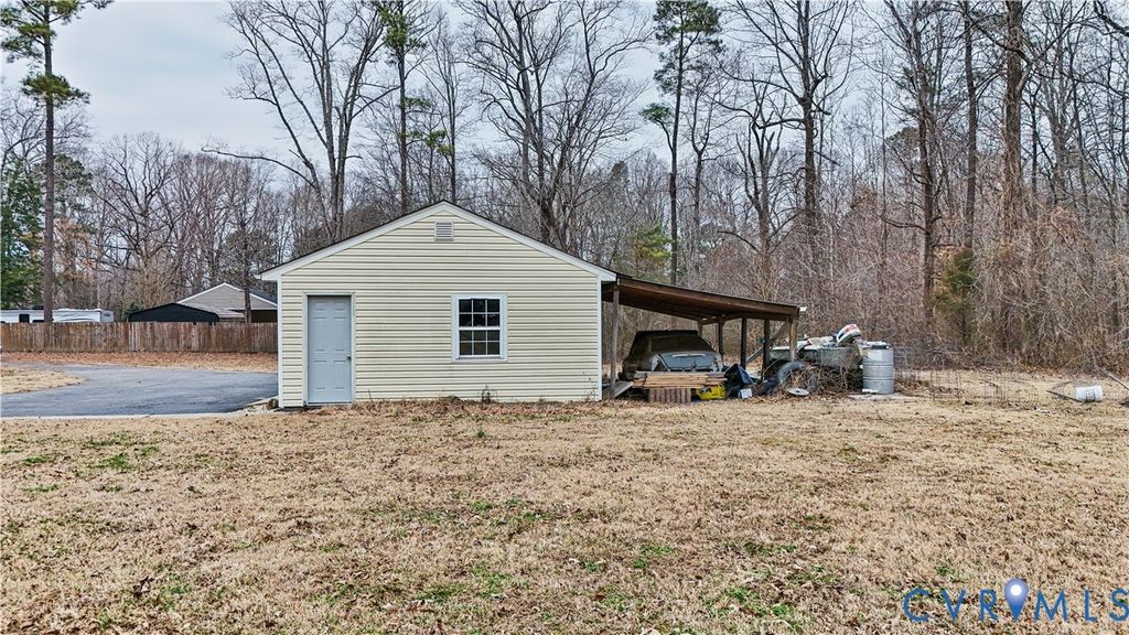Set back on just over two private acres in Prince George, this affordable home offers the kind of space and quiet that's getting harder to find. Mornings start a little slower here, with room to breathe, yet you're never far from what you need, just 4 miles to Fort Lee, about 8 miles to Southpark Mall, and an easy 35-minute drive to Downtown Richmond. Inside, this sweet home is ready for its next chapter. The carpet has been professionally cleaned, and while the finishes welcome your personal touch, the big-ticket updates were already completed within the last few years, giving a first-time buyer the confidence to move in and make it their own. A 30-year dimensional roof on both the house and garage and a new hot water heater completed in 2019, plus a newly serviced HVAC with new ductwork, a new well pump, and tank in 2022, these are the kind of important updates you may not see, but will appreciate every single day. Then there's the garage: oversized, detached, and ready to be whatever you need it to be. A workshop, hobby space, extra storage, or all of the above, plus two additional carports that make room for projects, toys, or extra vehicles. With high-speed internet and access to the Prince George County school system, this home offers the freedom of country living without giving up convenience. What a great place to settle in, spread out, and truly make your own!