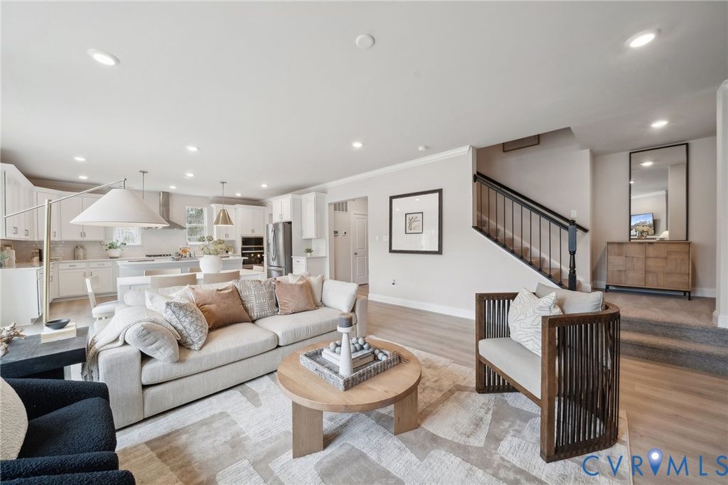 Welcome to the Jamestown floor plan, designed to blend open living spaces with comfort and versatility. The main level features a formal dining room, a dedicated office space, and a full bathroom, making it perfect for both work and leisure. The open-concept living area is ideal for gatherings, creating a seamless flow throughout the space. The bright and airy kitchen is a chef's dream, featuring a spectacular center island, gourmet amenities such as stainless steel appliances, quartz countertops, and a gas cooktop, perfect for cooking and entertaining. Upstairs, you'll find an additional open living space that provides flexible options to suit your needs, whether it's a media room, play area, or home office. The primary suite offers a true retreat, featuring an oversized walk-in closet and a luxurious bath with separate vanities and a private water closet. The second floor also includes a large laundry room, a full bathroom, and three additional bedrooms, providing ample space for family and guests. The Jamestown model is the perfect home for families who value modern design, flexible living spaces, and functional luxury.