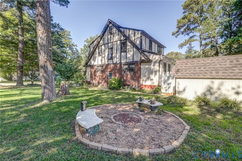 This charming 1927 Tudor-style home offers 2,039 sq. ft. of timeless character blended with modern updates. The neighborhood located on a bluff where the James and Appomattox Rivers meet is peaceful, scenic and rich in heritage. This beautifully maintained home features original hardwood floors throughout, as well as original door hardware, chandeliers, and wall sconces. The updated kitchen includes stainless steel appliances & granite countertops, offering both style & functionality. Other recent improvements include a 2 zone heat pump (2024), new rear deck (2024), detached shed (2023), updated electrical panel (2023), fresh interior paint (2023), and exterior paint (2024). A powder room is conveniently located off the kitchen. Upstairs, you'll find a large primary bedroom with space for a king-sized bed, two closets, & a dressing area. Two additional bedrooms are generously sized. The upstairs full and half baths have been tastefully updated, blending classic charm with modern comfort. Off-street parking for two cars is accessible via the rear alley. The corner lot features a mix of mature trees & newly planted fruit trees. A fenced area in backyard provides a perfect space for pets, and the unfinished basement includes a workbench for hobbies or storage. This rare historic gem offers character, comfort, and a location steeped in American history"”just steps from scenic river views & national park landmarks. 509 Cedar Lane is registered on both the National & State Historic Registers,