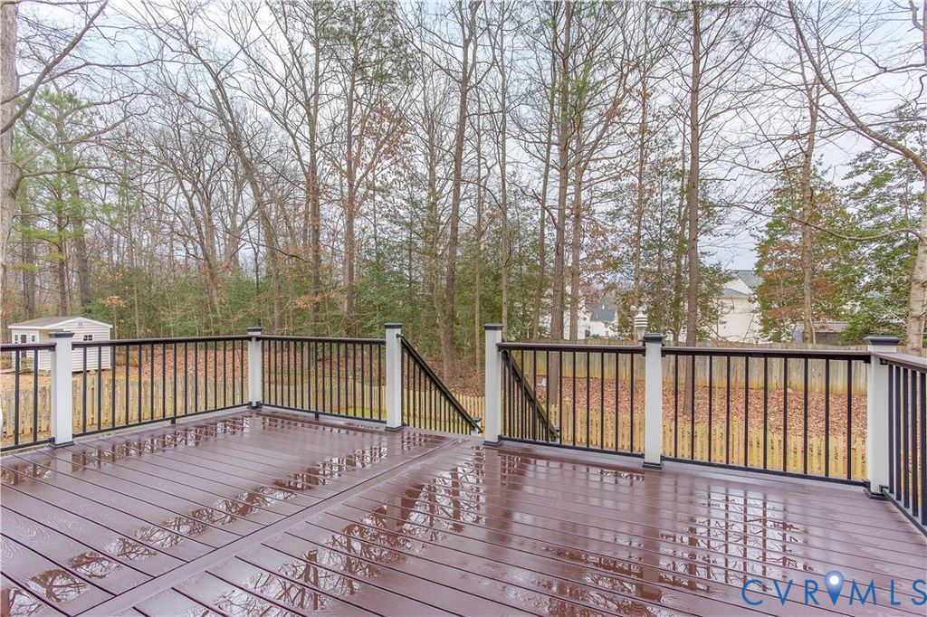 Welcome to 10801 Hinton Court, a beautifully maintained, move-in-ready home tucked away on a quiet cul-de-sac in the sought-after Lexington neighborhood of Glen Allen. This classic three- level residence offers 4 bedrooms, and 2.5 bathrooms. From the moment you arrive, the home's curb appeal stands out, from the manicured landscaping to the newly paved driveway all creates a welcoming first impression. Stepping inside, you're greeted by a bright foyer with handsome new hardwood floors that set the tone for the warm and inviting interior. Just off the entry, the formal dining room is filled with natural light and features a large bay window, crown molding, and chair rail detailing. The spacious living room impresses with soaring ceilings, a gas fireplace, and ceiling fan. The sliding screen door provides easy access to the nearly new luxury rear deck with Trex flooring. The newly updated kitchen is designed for both function and style. Newer stainless-steel appliances and a vent hood pair with granite countertops, a center island, subway tile backsplash, recessed lighting, and pantry storage. Upstairs, the primary suite offers a comfortable retreat with vaulted ceilings, ceiling fan, and double-door entry. The ensuite bath features double vanities, updated light fixtures, a soaking tub, and separate shower, along with two closets for ample storage. Three additional bedrooms provide flexibility for guest rooms, home offices, or playrooms, all served by a full bath. This home has been meticulously maintained and thoughtfully updated. Other major improvements include a new roof and heat pump in 2019 and new windows in 2022, new, custom Plantation shutters installed throughout the home, a complete Brinks security system, a convenient flip clean gutter system, as well as a new irrigation system. The setting feels private and peaceful, yet you're just minutes from Short Pump, Innsbrook, major interstates, shopping, dining, and everyday convenience giving you the best of both tranquil living and accessibility.