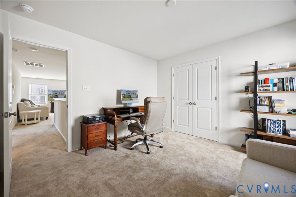 Step into a home that balances style, comfort, and thoughtful design on Honeybee Drive. Nestled on a large corner lot with a beautifully irrigated lawn, this 4 bedroom, 3 bathroom residence offers a thoughtful layout blending open living with versatile private spaces. Step inside to find a welcoming flow from the dining room, highlighted by a chandelier, into the heart of the home where the kitchen, eat-in area, and living room seamlessly come together. The kitchen is styled for both function and enjoyment with granite countertops, a center island beneath pendant lighting, and a dedicated bar area perfect for your morning coffee ritual. The eat-in nook opens to a rear deck, creating a natural setting for indoor-outdoor entertaining while a spacious pantry, recessed lighting, and direct garage access add convenience. The first floor also features a full bathroom with decorative flooring, which has direct access to a flexible space, ideal for remote work or guest accommodations. Upstairs, a carpeted loft provides a cozy retreat. The oversized primary suite feels like a private escape, complete with an expansive walk-in closet and a spa-like bathroom featuring a soaking tub, large glass-enclosed shower with a built-in bench, double vanity, and a private water closet. There are three additional bedrooms, two of which include walk-in closets. A hall bath services the bedrooms, and a second-level laundry room with extra space for storage keeps daily routines simplified. Set in Hanover County's sought-after MechanicsvilleTaylor Farm community, you'll enjoy a community pool, playground, sidewalks aquick nd more! Easy access to several shopping, dining, and lifestyle destinations just minutes away. Come experience Walkable to sought after Hanover Co. schools! Make this home the backdrop for your everyday moments and special gatherings alike, schedule your tour today!