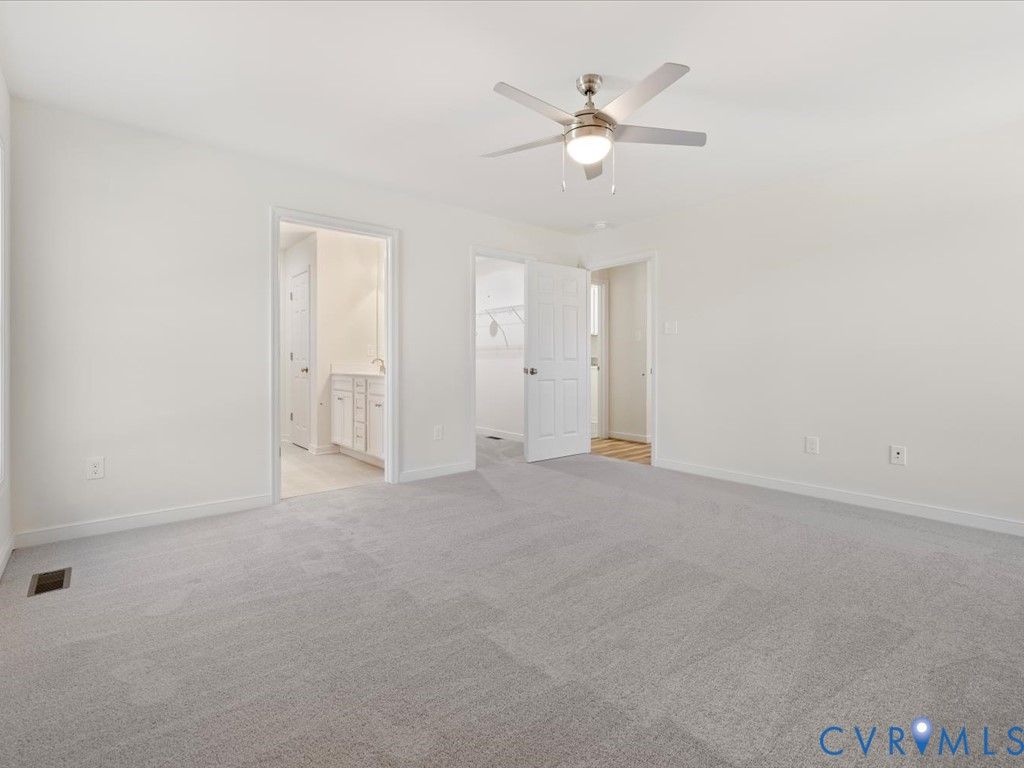 Move-In Ready with First-Floor Primary | No HOA or Private Restrictions Experience the best of Powhatan County living in this beautifully crafted, move-in ready home offering privacy, quality construction, and scenic farmland views. Built by one of Powhatan's premier custom builders, this property blends thoughtful design, modern finishes, and peaceful country surroundings on a manageable lot. The sought-after first-floor primary suite provides true one-level living and features a spacious bedroom, oversized walk-in closet, and a beautifully appointed en-suite bath with a custom tiled shower. The open-concept main level showcases durable, low-maintenance LVT flooring, recessed lighting, and a welcoming Great Room with fireplace that flows seamlessly into a generous dining area overlooking tranquil pastureland. The kitchen is equally impressive, designed for both everyday living and entertaining, with a large center island, walk-in pantry, under-cabinet lighting, and designer finishes in today's most desirable color palettes. Upstairs, you'll find three additional bedrooms, a full hall bath, and an expansive walk-in storage area"”perfect for organization or future expansion potential. Additional features include an attached garage with generator sub-panel, a 12' x 16' covered rear deck ideal for relaxing or entertaining, a full gutter system with guards, and thoughtful custom upgrades throughout. Conveniently located just minutes from Powhatan schools, shopping, dining, and the Village of Powhatan, this home offers the perfect balance of rural privacy and everyday convenience. If you're searching for a Powhatan VA home with a first-floor primary suite, no HOA restrictions, and space suitable for a home-based business or peaceful country living, this exceptional property is a must-see. Schedule your private showing today.