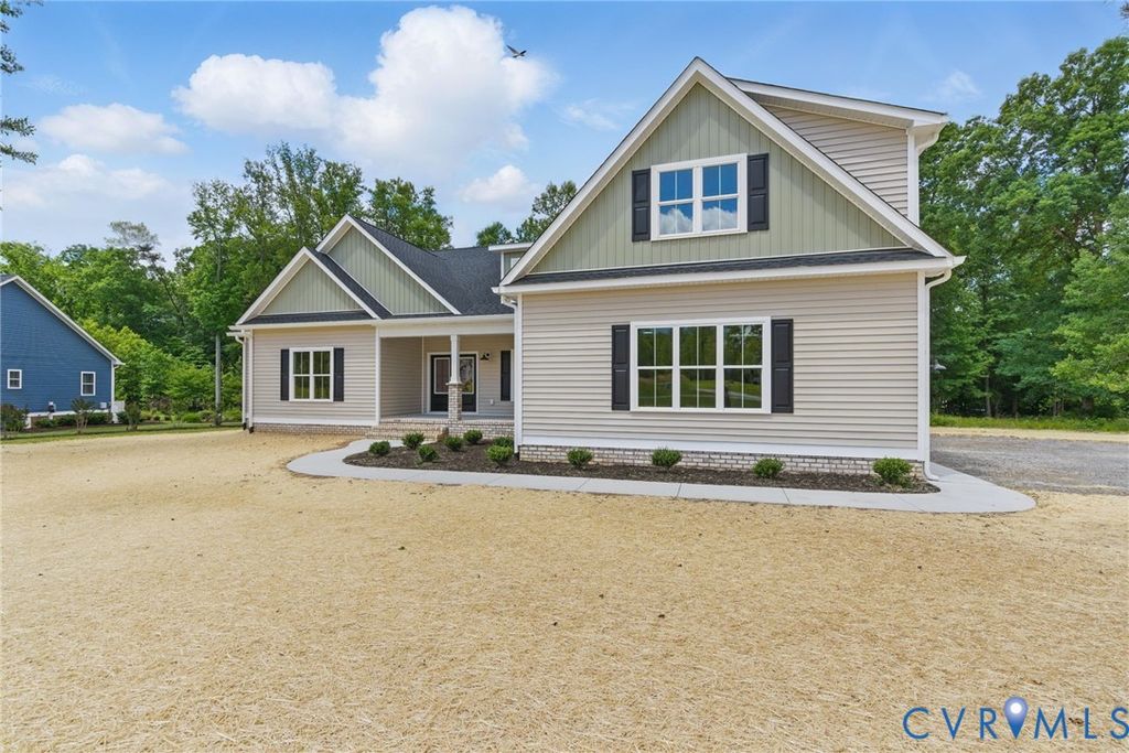 Welcome to 195 Promise Lane in Noah's Landing, a premier corner-lot property w/seasonal lake views & private-side lake access in one of Lake Anna's most desirable communities. Built by the highly respected J.D. Goodman Builder Inc., this BRAND NEW Craftsman home showcases the exceptional craftsmanship & elevated finishes buyers actively seek and rarely find. Double front doors lead into the vaulted family room, w/custom shiplap fireplace surround & porch access. The gourmet kitchen delivers w/quartz countertops, farmhouse sink, tile backsplash, under-cabinet lighting, soft-close cabinetry, & an expansive peninsula. The layout is intentionally designed for flexibility & long-term value. A main-level primary suite provides spa-inspired luxury w/dual vanities, private toilet room, an expansive walk-in tiled shower w/niche & rainfall head, & generous WIC w/custom shelving. Upstairs, a second private primary suite is perfect for multi-generational living, extended guests, or hosting weekends at the lake. Two additional bedrooms downstairs share a hall bath & upstairs, a versatile 5th bedroom or flex space hosts a private bath. Additional upgrades: LVP flooring, conditioned crawl space, 42" sidewalk, finished 2-car garage, laundry/mudroom, & meticulous craftsman finishes throughout. Outdoors, find a covered composite rear porch boasting seasonal lake views, showcasing LKA's private side benefits: quiet waters, controlled access, & a more exclusive lake experience. The community lake access area offers a boat ramp, beach, tennis/basketball/volleyball courts. Whether seeking a full-time residence, a refined second home, or a short-term rental investment opportunity on the private side of Lake Anna, this property delivers rarity, design, & long-term desirability in one cohesive package. Dining, wineries & breweries nearby! Corner lot. Seasonal lake views. Private-side access. Two primary suites. J.D. Goodman Builder craftsmanship. Homes with this combination do not sit quietly; they get claimed.