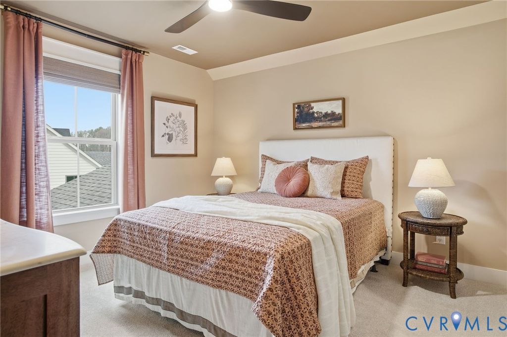 Welcome home to the Stuart by Main Street Homes, a home designed for everyday comfort, effortless style, and seamless first-floor living. Currently under construction and expected to be ready next spring, this thoughtfully designed home offers a warm and inviting setting for today and for years to come. The entry opens to a formal room, perfect for a living or dining space. The expanded gourmet kitchen shines with a large island, wall oven, wall microwave, and an open flow into the spacious great room and breakfast nook. This bright, welcoming heart of the home is ideal for hosting Sunday brunches or relaxed afternoons with family and friends. Step outside to the vaulted screened porch, which extends your living space outdoors and offers a peaceful retreat overlooking the half-acre corner lot. The first-floor primary suite is a serene escape, featuring a double-door entry, dual vanities, a luxurious Euro shower with a linen closet, and a generous walk-in closet. Two additional first-floor bedrooms and a full bath provide privacy for family or guests. Upstairs, a finished bonus room, an additional bedroom, a full bath, and walk-in storage offer versatile spaces for guests, hobbies, or quiet relaxation. Everyday living is made easier with a mudroom, abundant storage, and Energy Advantage+ efficiency. Sod and irrigation on all sides complete the exterior. Located in desirable Chesterfield County, this home combines convenience, recreation, and community. Enjoy quick access to Route 288, Westchester Commons, Short Pump, downtown Richmond, or the airport. Nearby parks, rivers, golf courses, local attractions, highly rated schools, and excellent healthcare make this a lifestyle that's balanced, connected, and full of possibilities. Please note that this home is currently under construction. Photos, videos, and/or 3D tours represent the floor plan but are not of this specific home. Selections and features are samples and may vary. See a New Home Consultant for details.