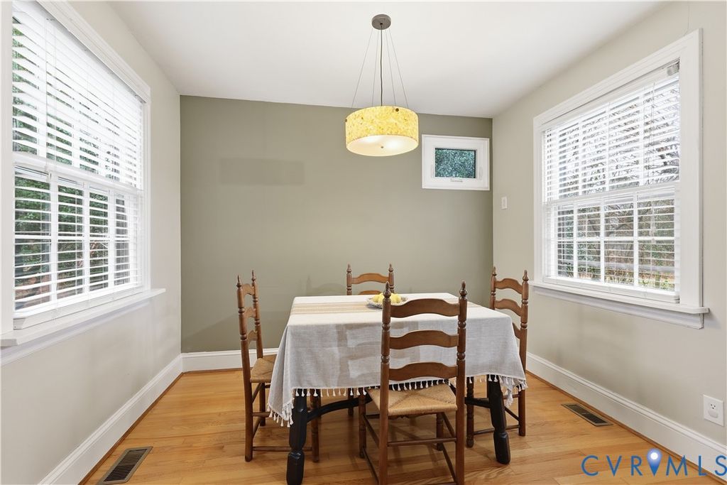 Welcome to 6920 Woodrow Terrace, a thoughtfully updated, historically charming, 1941 home in the desirable Lakeside area of Richmond. Offering approximately 1,600 square feet on a level 0.24-acre lot, this 2-bedroom, 2-bath home blends classic character with meaningful modern improvements along with an enchanting covered front porch supported by classic brick and wood columns. Abundant seating and a beautiful porch swing. A peaceful spot to enjoy your morning coffee, quiet evenings, and friendly neighborhood conversations. The layout includes a large main living/dining space with the original hardwood floors throughout the home. A flexible built-in office space with custom shelving that could easily be a third bedroom connects to the staircase leading to the private upstairs primary suite with full bath, finished in calming earth tones that includes a separate 11 x 11 room. This versatile area could serve as a nursery, sitting room, or additional flex space depending on your needs. Over the past several years, the owners have invested in substantial upgrades. In 2020, the interior was repainted, a bathroom was renovated, gutters with leaf guards were installed and lighting fixtures were updated throughout. In 2021, new windows were installed upstairs along with several downstairs. A new water heater was added in 2022. Recent 2025 improvements include a new heat pump, resurfaced bathtub, sump pump with perimeter drainage system and new vapor barrier, new kitchen countertops, sink and faucet fixtures, and anew double oven. These updates reflect careful maintenance and long-term stewardship. Additional highlights include a wood-burning fireplace, new deck, and level backyard ideal for outdoor enjoyment. Conveniently located near local amenities while maintaining neighborhood charm, this home offers comfort, character, and confidence for its next owner.