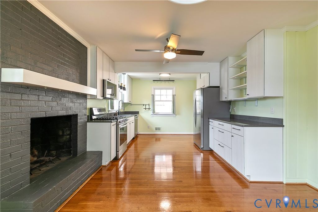 Welcome home to this stylish 3-bedroom, 1.5-bath ranch in Forest Hill! Blending classic charm with modern updates, this beautifully maintained home offers comfort, convenience, and character throughout. The expansive kitchen features new cabinetry, sleek quartz countertops, stainless steel appliances, gas cooking, and a spacious eat-in area anchored by a cozy brick fireplace. Hardwood floors and updated light fixtures flow throughout the home. The partially finished basement adds valuable flexible space, complete with a bonus room ideal for a home office, art studio, workout space, or guest room. Major updates include a new roof (2019) and new AC condenser (2020), offering peace of mind for years to come. You can be just walking or biking distance to the James River Park System, O'Toole's Restaurant & Pub, the South of the James Farmers Market, and Forest Hill Park.