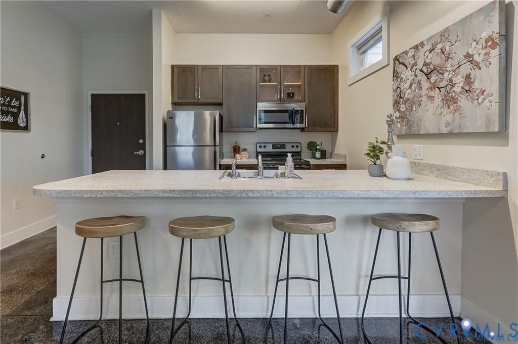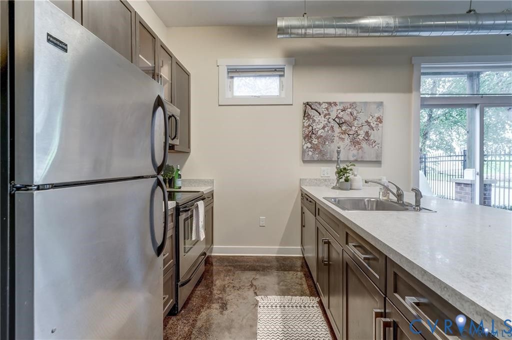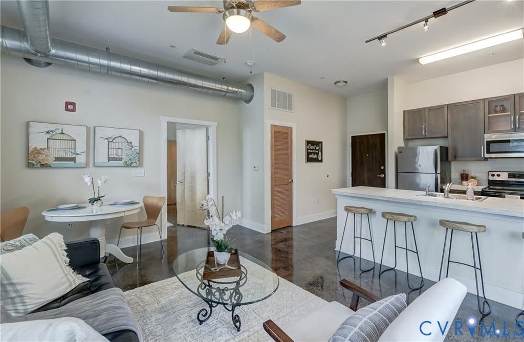 Luxury Downtown Condo with City Views | Newly Constructed | Utilities, Parking, Internet, Cable, Water, Sewer, Trash Included Newly constructed and highly energy efficient, this sophisticated 1-bedroom, 1-bath condominium offers elevated urban living with refined finishes and exceptional inclusions. Designed with 10-foot ceilings and rich hardwood flooring throughout, the open-concept layout is both modern and inviting. The gourmet kitchen features premium cabinetry, quality countertops, and a sleek, functional design ideal for entertaining or everyday living. The spacious primary suite includes a generous walk-in closet, while the private patio/deck provides the perfect space to unwind and enjoy stunning city views. This secure building offers controlled access and a low-maintenance lifestyle with an extensive list of HOA-covered amenities and services, including insurance, common area and exterior maintenance, professional management, janitorial services, landscaping, reserve funding, sewer, water, trash removal, Verizon FIOS cable and internet, and parking. Tenant responsible for electric only. Ideally located with easy access to downtown, the James River Park System, the T-Pott Bridge, and an exciting mix of restaurants and bars emerging nearby. Experience luxury, efficiency, and convenience in one exceptional offering. Move-in ready and designed for effortless city living.