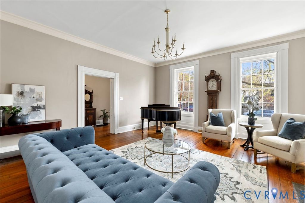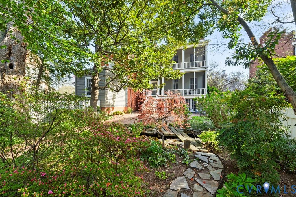 Step into Richmond history at the iconic Haile House located in the heart of Church Hill's St. John's Church Historic District. This remarkable Greek Revival residence, circa 1844, was commissioned by John Van Lew, father of famed Unionist Elizabeth Van Lew, and designed by noted architect Otis Manson. The Haile House along with the neighboring Elmira Shelton House, stand as significant architectural landmarks. 2403 E Grace boasts timeless details that have been carefully preserved. Enter through the stately Doric columns to find six original mantels, a sweeping curved staircase, pocket doors, recessed shutters, and wide-plank flooring. Spanning four levels, the home balances historic elegance and spaces to enjoy both indoor and outdoor living. The English basement serves as the heart of the home, featuring a chef's kitchen, a formal dining room, and a flex sunroom with French doors to the rear garden. The main level offers a gracious entry hall, formal parlor, and a library lined with floor-to-ceiling bookcases. Four bedrooms are distributed across the upper floors, offering flexibility for guests, office or retreat spaces. Outdoor living is just as compelling, with newly rebuilt two-story rear screened porches (2025) overlooking a fully fenced, beautifully landscaped garden complete with brick walkways and a coy pond. Additional recent improvements include a copper roof (2017), and updated HVAC (2023). This home offers a truly rare opportunity to own a storied and beautifully preserved piece of Richmond's history. Fireplaces, chimneys, flues and irrigation system convey 'as is'. Gas fireplaces all working and recently serviced except in the kitchen. Irrigation non-working.