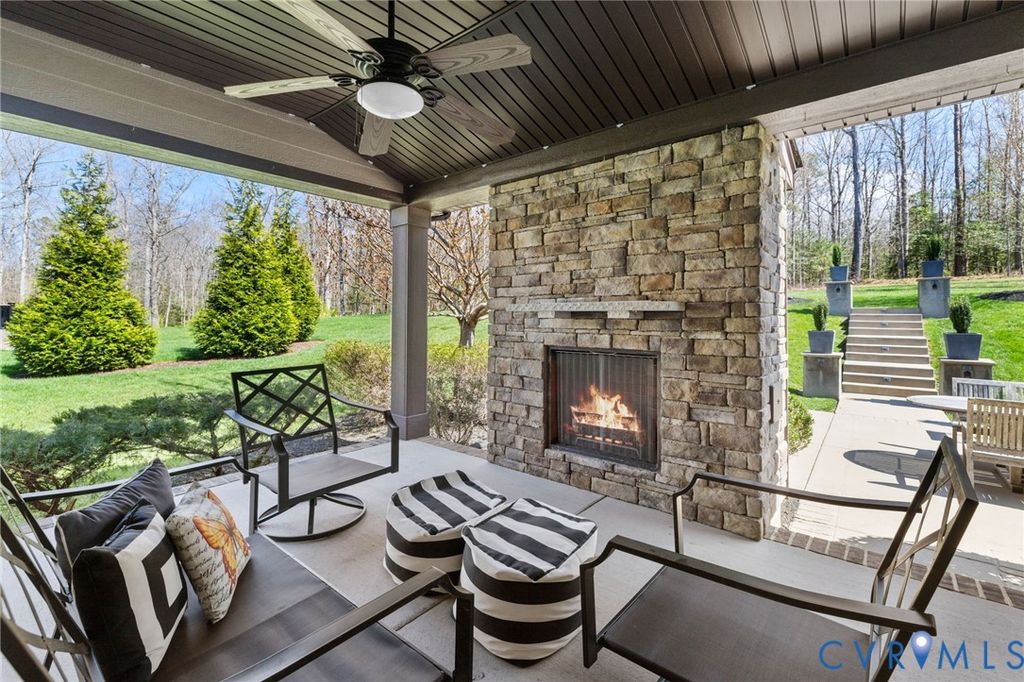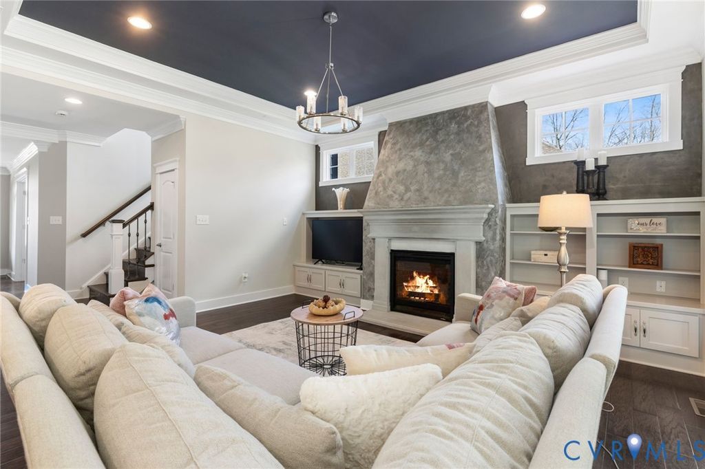 Former Homerama Designer Showcase Home in Magnolia Green, set on a Private 0.58-acre Cul-de-sac lot overlooking natural green space. Step inside this beautifully designed home offering over 4,000 sq ft, 5 bedrooms, and 4.5 baths, where thoughtful details and quality finishes create a space that's ideal for both everyday living and entertaining. Custom millwork, rich moldings, a curated paint palette, and upgraded lighting add warmth and character throughout. The welcoming foyer with 9-foot ceilings opens to a flowing main level. A private Office and formal Dining Room sit just off the entry, while the spacious living room connects seamlessly to the Chef's Kitchen. A Valencia stone gas fireplace with custom built-ins and a wall of windows brings in abundant natural light and leads to the covered patio with its own stone fireplace makes for year round enjoyment. The kitchen has a massive 4' × 8' island, BRAND NEW Bosch Professional Gas Range and BRAND NEW Bosch Refrigerator, Butler's Pantry, Walk-In Pantry with custom cabinetry and sink, and abundant workspace that makes everyday living and hosting a joy. Downstairs you'll also find a First-floor Guest Suite with Walk-In closet and Private En-Suite Bath, plus a convenient "landing zone" that leads straight into the 3-CAR Garage. Upstairs, Three additional Bedrooms (each with generous closets and direct bath access) surround a Spacious Recreation Room featuring built-in cabinets, carpet, and bright windows perfect for movie nights, homework or play. The Owner's Suite is a true retreat with a Spa-like Bath with Oversized Shower with Dual Heads, Soaking Tub, Private Dressing Area, and TWO Walk-In Closets. Finishing out the 2nd floor is the Laundry Room open to the Master Walk-In and the Hallway. A Third-Floor Bonus Space offers endless possibilities "” finish it for a home office, media room, extra bedroom, or keep it for storage. This is more than a home "” it's the lifestyle you've been dreaming of. Turn-key, meticulously maintained, and ready for you.