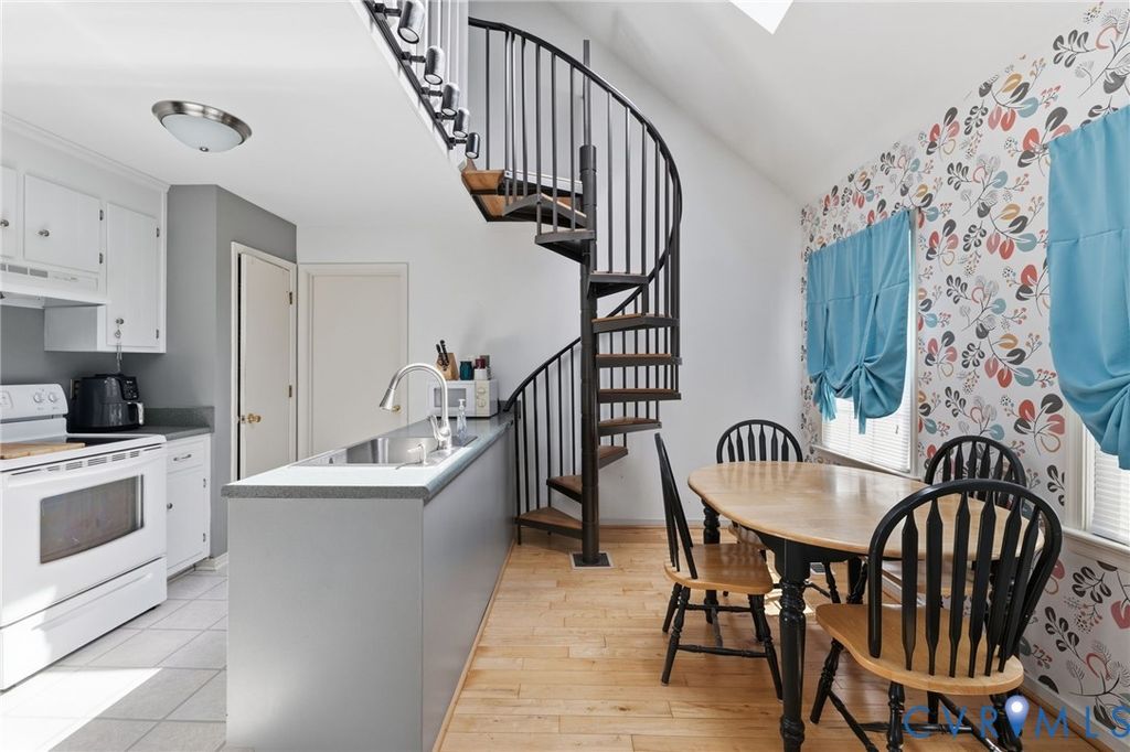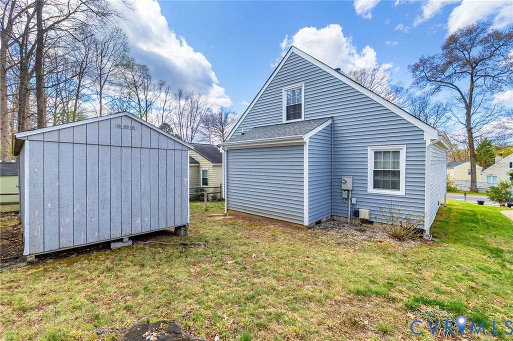 Ashbrook contemporary cottage with 2 large bedrooms and 1.5 baths plus a loft. Vaulted living room features hardwood floors, a fireplace and is open to the dining area. Engineered hardwood floors add a nice consistent look in the Living Room, Dining Area, Hallway and both Bedrooms. Kitchen opens to Dining Area, and has access to the half bath. A spiral staircase leads to a loft area that overlooks the main level and offers great "flex space." The hallway leads to two well sized bedrooms, each with a ceiling fan and a closet, one of which is oversized. The bedrooms have direct access to the main bath with an updated vanity. A large deck wraps around the the house from the front to the side and offers space for grilling and access to the rear yard. Rear yard has a large shed and direct access to the neighborhood walking trail. Convenient location offers quick access to 360W and all the shops and services that the Hull St corridor has to offer.