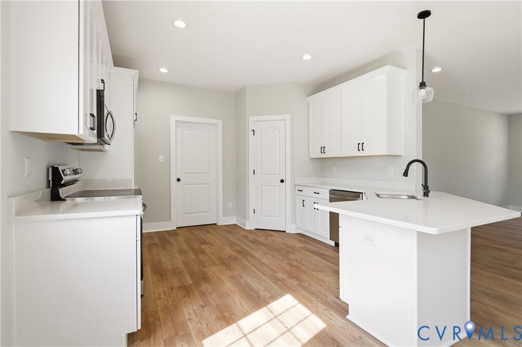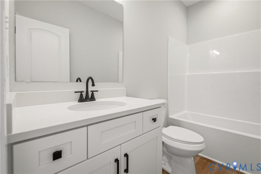 Modern country luxury by Oak Hill Homes! This pristine Redwood model is nestled on a private lot of almost 1 acre, offering a seamless blend of sophisticated design and serene rural living. As you step inside, the layout reveals soaring 9 foot ceilings and gorgeous luxury vinyl plank flooring that extends throughout the entire residence. The heart of the home is a chef-inspired kitchen featuring bespoke white shaker cabinetry with soft-close hinges and upgraded level C quartz countertops. A generous peninsula provides a natural gathering spot for morning coffee or casual entertaining, overlooking the sun-drenched family room. High-end Samsung stainless steel appliances and matte black hardware add a sleek edge to the functional interior. Large, energy-efficient double-hung windows flood the space with natural light while providing views of the surrounding greenery. The primary suite serves as a tranquil getaway, boasting a large walk-in closet and a private bathroom with an oversized 5 foot fiberglass shower. Two additional versatile bedrooms offer plenty of room for guests or a quiet home office. Beyond the interior, the deep front porch and ten-foot rear deck invite you to enjoy the fresh air and expansive, cleared yard. Superior construction is evident in the brick foundation, finished 2 car garage with level one sheetrock, and high-efficiency Trane HVAC system ensuring year-round comfort. This property places you in a prime location to experience the best of Powhatan. Spend your weekends exploring the scenic trails and river access at Powhatan State Park or enjoying the athletic facilities at Fighting Creek Park. The historic Courthouse Village is just a short drive away, offering a unique selection of local boutiques, community events, and dining options. With a perfect mix of contemporary features and a quiet country atmosphere, this new construction provides an unparalleled living experience. Schedule your private tour of this exceptional property and imagine the possibilities of your new lifestyle!