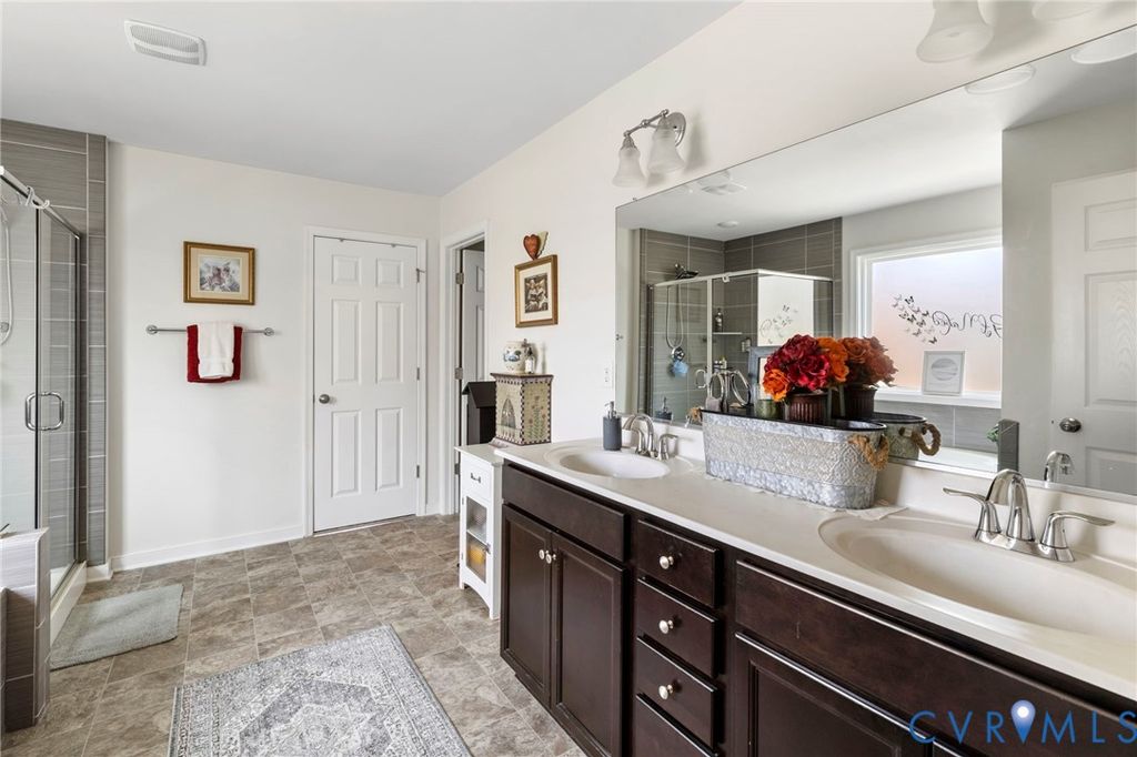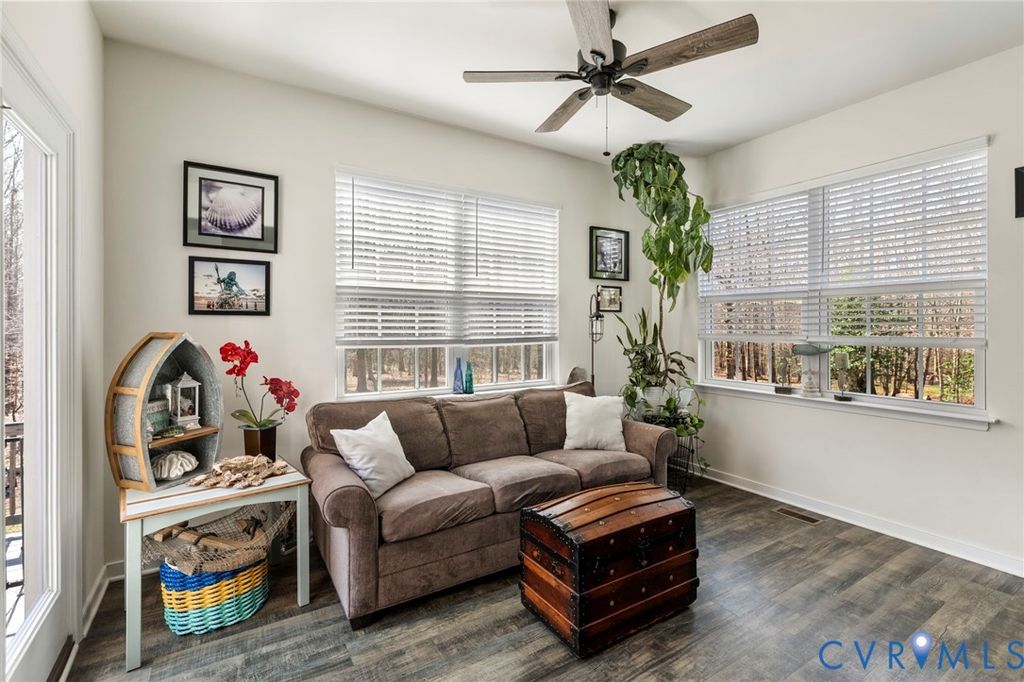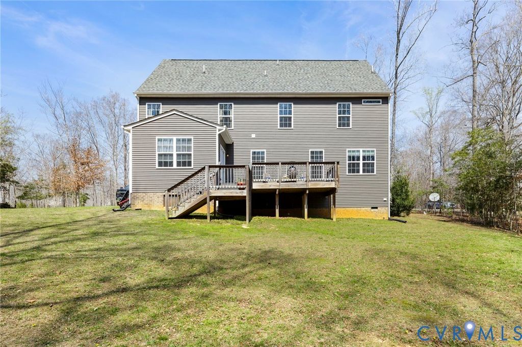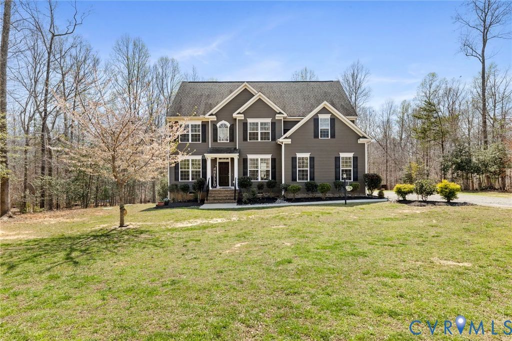 Set on five private acres in the sought-after Diascund Creek community, this 2018 Main Street Homes build offers the perfect blend of space, functionality, and peaceful surroundings in New Kent County. Inside, the main level is designed for both everyday living and effortless entertaining, featuring luxury vinyl plank flooring throughout, a spacious eat-in kitchen with granite countertops, a large center island, and a walk-in pantry. A formal dining room provides the perfect setting for hosting, while a first-floor guest suite offers flexibility for visitors or multigenerational living. Upstairs, a generous loft creates an ideal secondary living space, perfect for a playroom, home office, or lounge. The primary suite is a true retreat with dual walk-in closets and a large en suite bath complete with a soaking tub and separate shower. Two additional bedrooms, each with walk-in closets, share a well-appointed hall bath. The finished third floor adds even more versatility, currently set up as a movie room with an additional finished storage or flex space to suit your needs. Enjoy the privacy and natural beauty of five acres from the expansive back deck, offering the perfect backdrop for relaxing or entertaining. A rare offering in Diascund Creek, where newer construction, expansive acreage, and refined living align beautifully. As a member of this very unique community, residents enjoy the use of more than 240 acres of common area. Horses permitted! Please note, square footage showing in tax records in the amount of 2902 does not reflect the finished third floor. This recently finished space adds apx 750 square feet of living space including 2 rooms and a half bath!