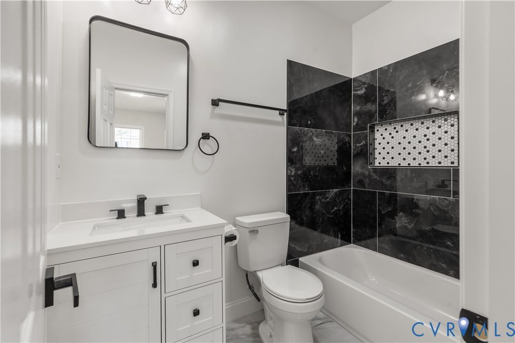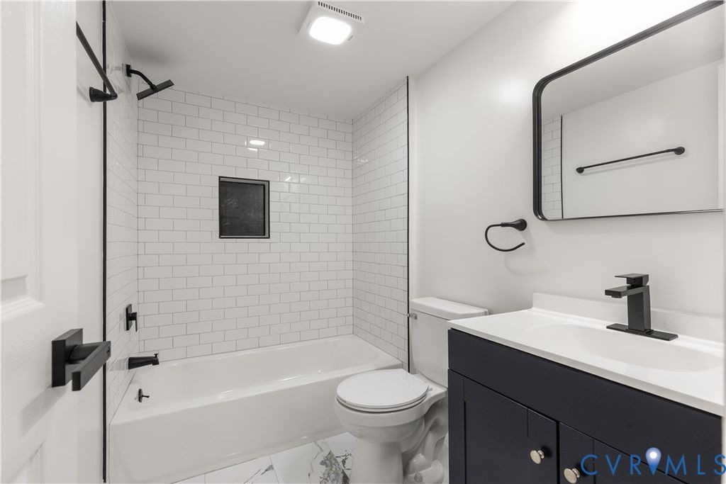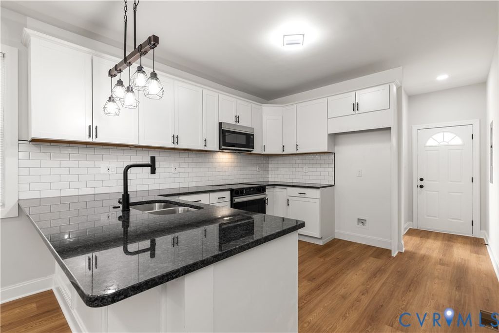 From the moment you arrive, 116 Lafayette Ave presents a welcoming first impression with its landscaped front yard and inviting porch, an ideal setting for quiet mornings or relaxed evenings. The property offers both street parking and a private driveway, providing practical options for residents and guests. Inside, the home has been fully updated with new LVP flooring and modern light fixtures throughout, creating a clean and cohesive aesthetic. The living area is open, offering access to kitchen while maintaining a comfortable atmosphere. The kitchen sits at the center of the home and features granite countertops, stainless steel appliances, a central island with seating, new cabinetry, and updated finishes throughout, making it equally suited for everyday living and entertaining. The first-floor primary suite comes complete with a fully renovated en-suite bathroom featuring tiled floors, a tiled shower and tub, a new vanity, updated light fixtures, and sensored lighting, offering both privacy and convenience. Additional updates include brand new electrical and plumbing, updated windows, new roof, and HVAC system (2024) providing long-term value and peace of mind. A secondary bedroom and fully updated hall bathroom complete the main level. A dedicated laundry and utility room offers washer and dryer hookups with opportunity for additional storage. Upstairs, a fully finished second floor lofts provides even more flexible living space, along with a third bedroom and full bathroom. The backyard includes usable outdoor space, newly finished deck, and a detached shed for storage. Positioned in the heart of Colonial Heights, 116 Lafayette Avenue offers a blend of convenience, thoughtful renovation, and flexible living. Located directly across from the courthouse and just moments from Boulevard 301, the home is surrounded by everyday essentials, dining, shopping, and the charm of locally owned businesses that define the area. This home is one to not miss out on, schedule your tour today!