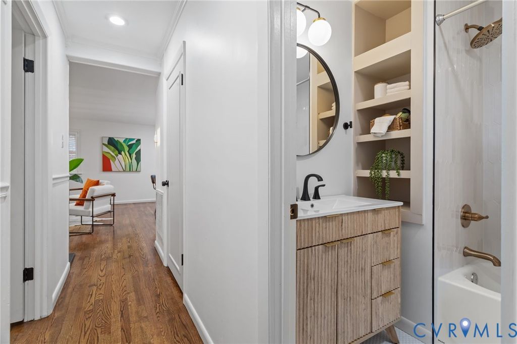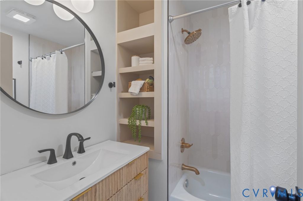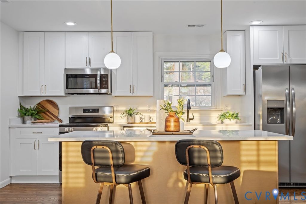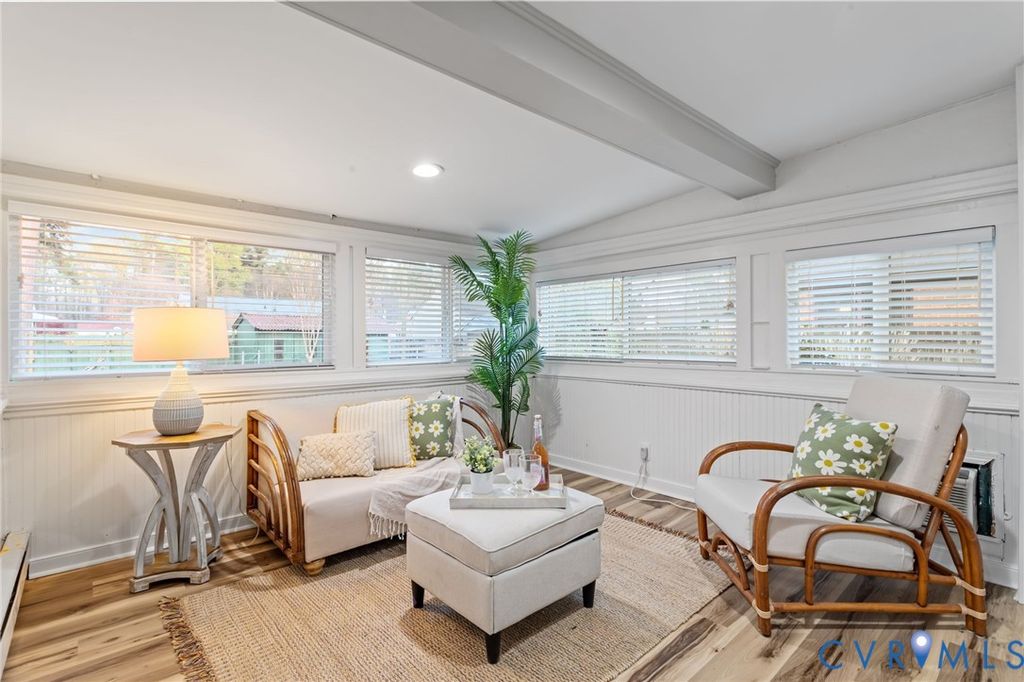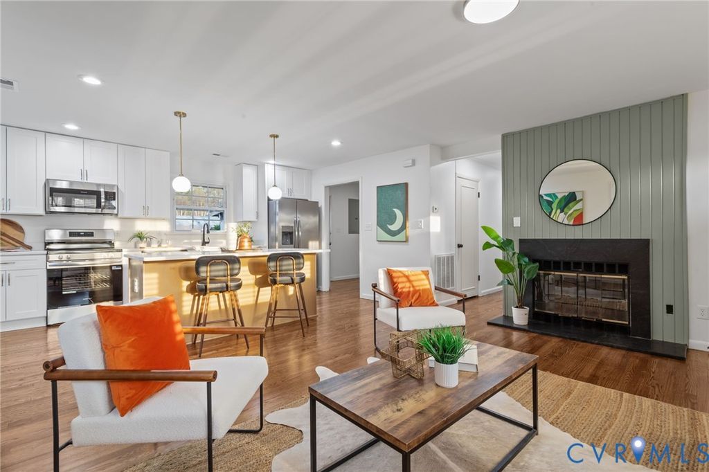 Renovated brick ranch in the desirable Lakeside area! This 3-bedroom, 2-bath home has been thoughtfully updated throughout, blending classic charm with modern finishes. Beautiful hardwood floors have been uncovered and refinished, and the layout has been opened up to create a seamless flow between the living and dining spaces. The primary suite has been reimagined to include a private en suite bath with custom tile work. With over 1,300 square feet, the home offers three spacious bedrooms, an updated hall bath with a tub, shower and custom tile, plus the full primary bath. The kitchen has been completely redesigned with a stylish mix of white and natural wood soft-close shaker cabinets, quartz countertops, and stainless steel appliances. A sleek wood-burning fireplace with a custom granite surround anchors the living room. Toward the rear of the home, a large sunroom provides additional living space with lots of natural light and is fully heated and cooled, making it perfect for year-round use. From here, you have access to the backyard, which features two sheds with the option to connect to power and plenty of space to create your ideal outdoor setup or garden. The circular driveway offers easy access and ample parking, with additional space towards side/rear of the house. Major updates include new electrical and plumbing throughout, recessed lighting with dimmable feature, updated ceiling fans and fixtures, and a fully improved crawlspace with treated joists, new insulation, and a brand-new vapor barrier. The privacy fence will be completed prior to closing. This home is truly move-in ready and ideally located close to Lewis Ginter, major highways, shops, restaurants, and everything Lakeside has to offer!