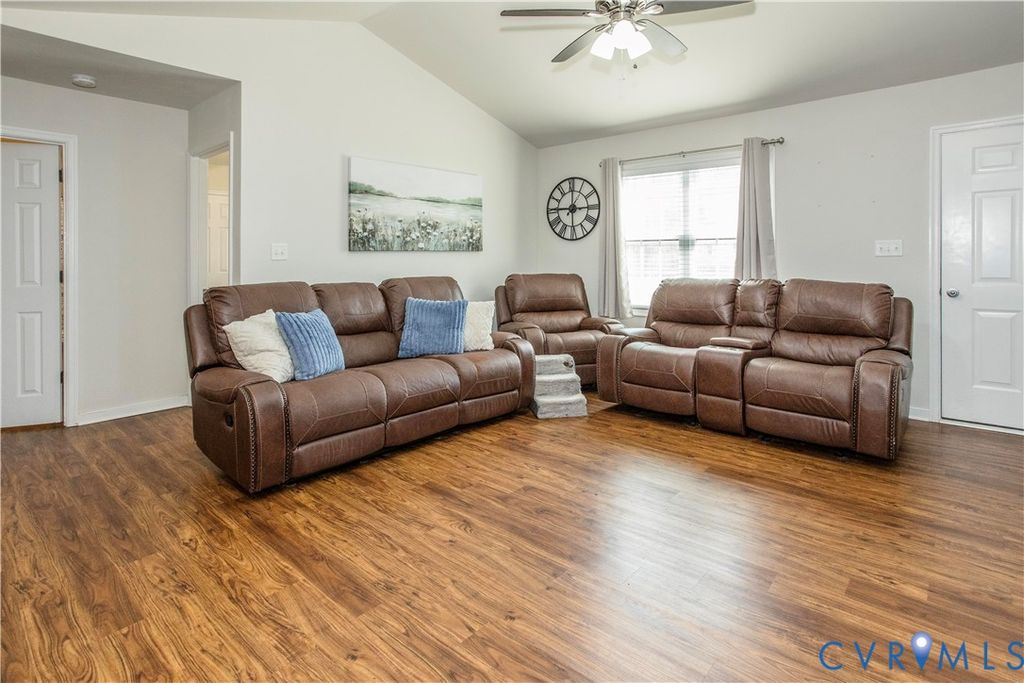 Built in 2018, this well-maintained ranch style home offers 3 bedrooms and 2 full baths and is ideally located in a sought after Matoaca area. Situated on a desirable corner lot, the property features two driveways providing ample parking in addition to the attached two car garage. The open concept floor plan creates a seamless flow between the living, dining, and kitchen areas, making it ideal for both everyday living and entertaining. The spacious eat-in kitchen offers abundant cabinetry, generous counter space, and a bar top island perfect for casual dining or gatherings. Just off the dining area, enjoy easy access to a large screened-in back porch overlooking the fully privacy fenced backyard, an ideal space for relaxing or hosting guests. The oversized primary bedroom serves as a private retreat, complete with double closets and an en-suite bath featuring a double vanity. Two additional bedrooms offer flexibility for guests, a home office, or additional living space. A generously sized laundry room includes a utility sink and provides convenient access to the garage, dining area, and screened porch, adding functionality and ease to daily routines. Notable features include a fully privacy fenced backyard, attached two-car garage, open floor plan, and well planned layout that maximizes space and convenience. This move-in ready home combines modern construction, thoughtful design, and a prime location close to schools, shopping, and dining. This home is definitely a must see!