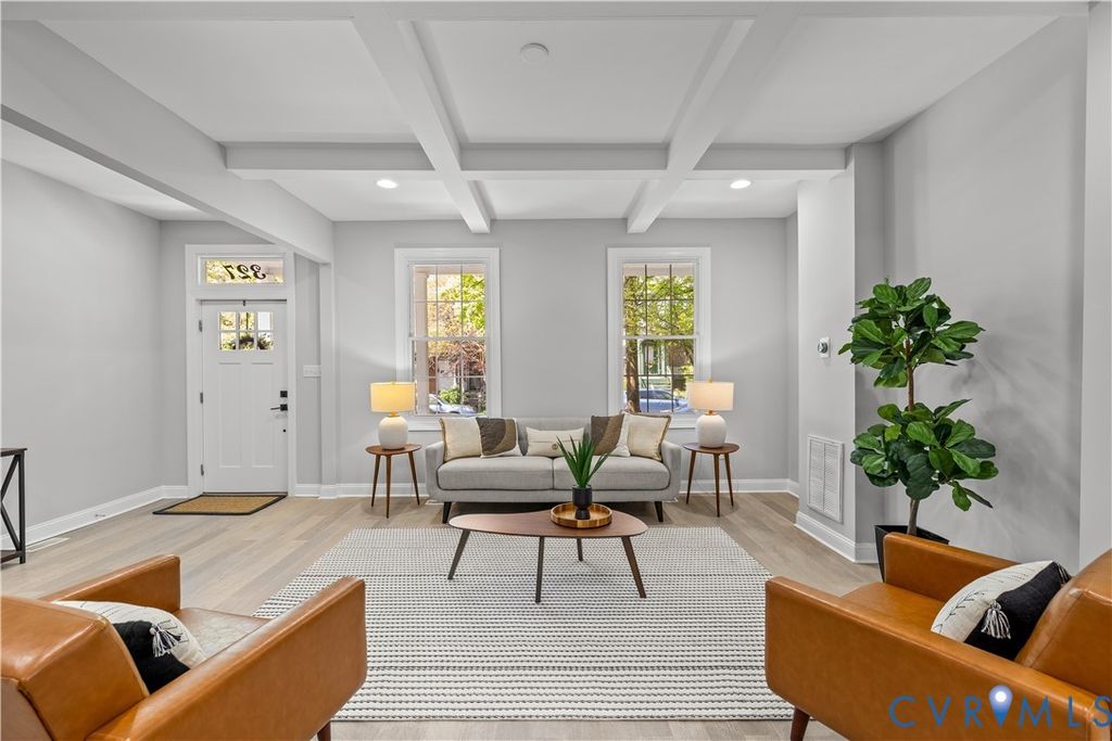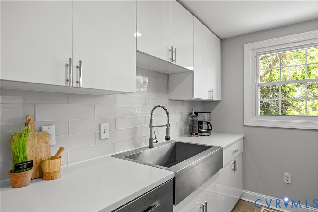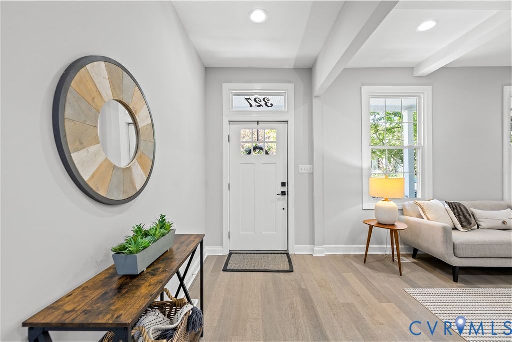 Welcome to 327 S Cherry St, a beautifully restored historic home offering the perfect blend of classic charm and modern convenience. Renovated in 2020 and freshly painted in 2026, this 3-bedroom, 2.5-bath home features updated electrical, plumbing, and a dual-zone HVAC system with Nest thermostats. Step inside to an open-concept main level featuring a spacious family room with coffered ceiling and dining area open to the stunning kitchen. The kitchen showcases white cabinetry, quartz countertops, a large stainless farmhouse sink, soft-close drawers, stainless steel appliances, gas cooking and a bar stool seating area "” ideal for both everyday living and entertaining. A convenient half bath completes the first floor. Upstairs, the spacious primary suite offers a walk-in closet and a beautifully appointed ensuite bath featuring a tiled shower with frameless glass door, jet shower tower system, and double vanities. Two additional bedrooms share a well-designed hall bath with tiled tub and tile flooring. The finished basement provides additional flexible living space along with washer/dryer hookups, two unfinished interior storage areas, and two exterior storage spaces. Out front, enjoy a welcoming front porch overlooking charming flower beds and a classic white picket fence, adding to the home's curb appeal. Enjoy outdoor living with a screened back porch, a small brick patio, a spacious fully fenced yard with privacy fencing, and rare off-street parking for up to three vehicles. Located in the heart of Oregon Hill, this home is just a short walk to L'Opossum and VCU. A truly move-in ready home with incredible style and location!
