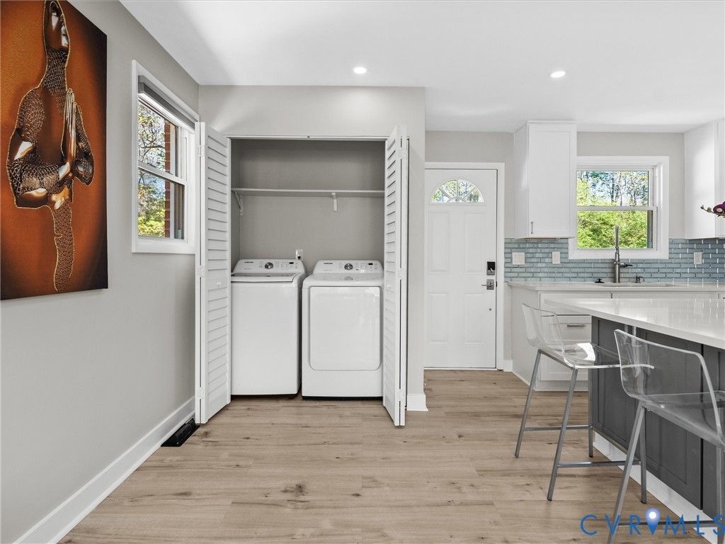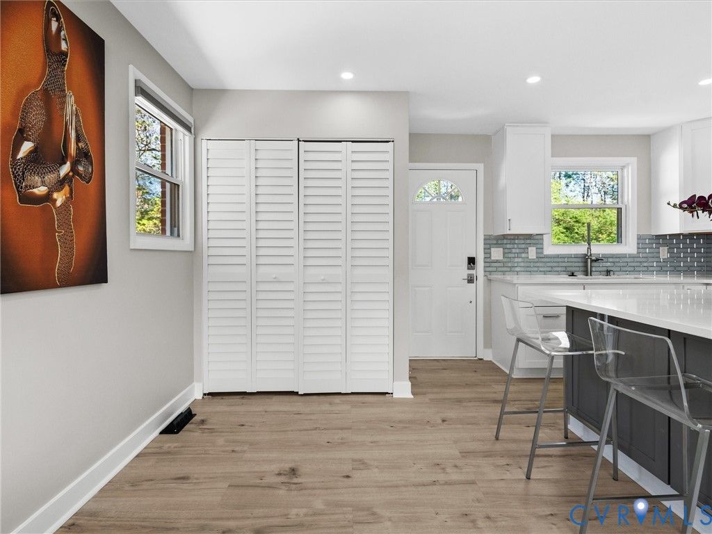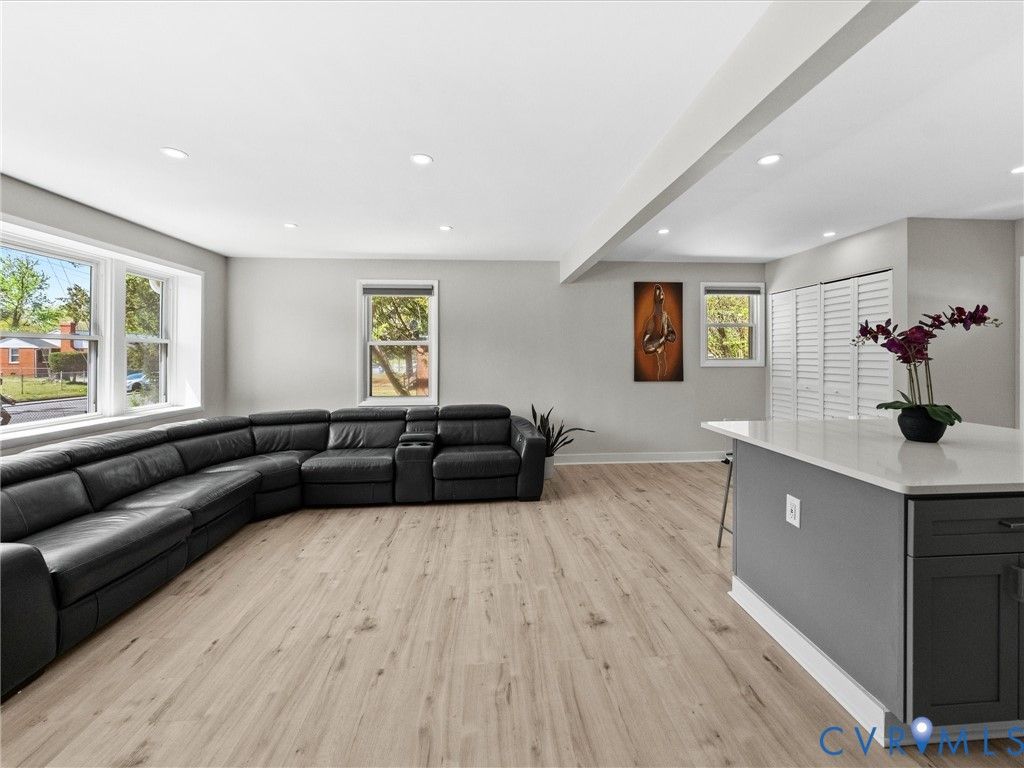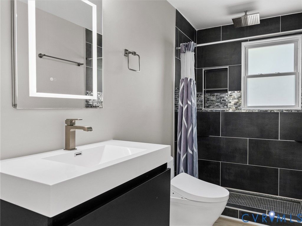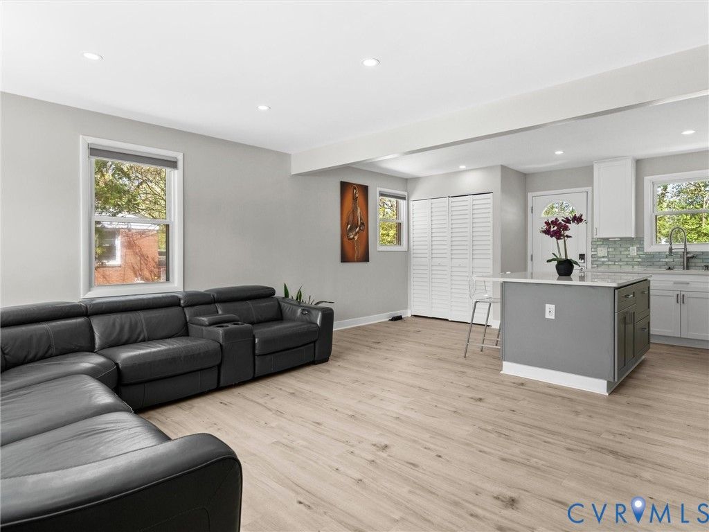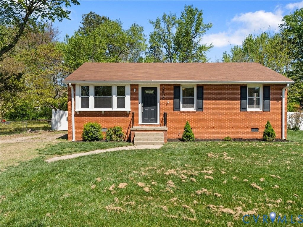 Welcome to 5604 Stella Rd, a beautifully updated ranch home nestled in the established Orchard Acres neighborhood of N. Chesterfield. Offering 3 bedrooms, 1 full bath, and over 1,000 sq ft of thoughtfully designed living space, this home blends classic charm with modern updates. Step inside to a bright and inviting living room featuring LVP flooring and recessed lighting, creating a warm and functional space for everyday living. The open eat-in kitchen is a standout, complete with granite countertops, stainless steel appliances, a stylish backsplash, and a center island with additional storage, perfect for cooking, gathering, and entertaining. The spacious primary bedroom offers direct access to the full bath via a pocket door and features a lighted ceiling fan and recessed lights. Two additional bedrooms provide flexibility for guests or a home office, all with LVP flooring, one with a sleek LED fixture and one with a lighted ceiling fan for added comfort. The full bathroom is a true showstopper, meticulously renovated with a contemporary, high-end aesthetic. The custom walk-in shower serves as a stunning focal point, boasting oversized charcoal-toned tiling with an elegant shimmering mosaic-tiled accent band, perfectly complementing the dual-tier built-in storage niche. The shower is finished with premium brushed nickel fixtures, including a handheld wand and a sleek control valve. To complete this high-tech retreat, the bathroom also features a premium TOTO system with a heated toilet seat and integrated bidet, alongside a modern vanity and backlit LED mirror. Enjoy being just minutes from Stratton Park and SwimRVA, while the Beulah Recreation Center offers endless community activities nearby. With quick access to Chippenham Parkway and Route 1, commuting is a breeze, and you're only a short drive from the shopping and dining at Stonebridge. This move-in ready home offers the perfect blend of modern interior style and incredible local convenience!