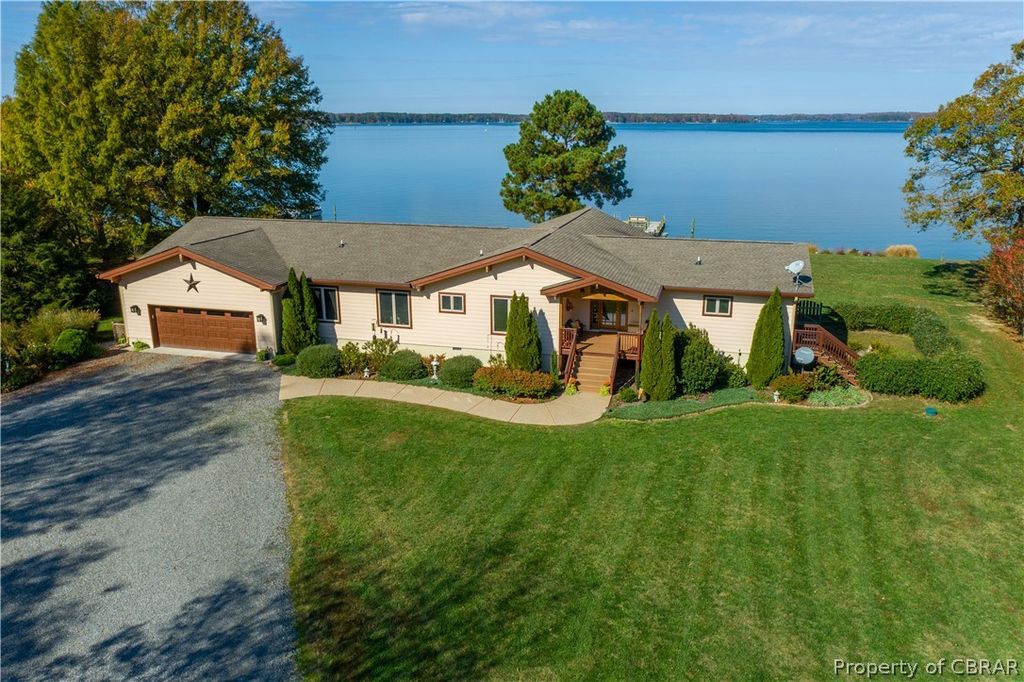 Updated home situated on 4 beautifully landscaped acres in a small waterfront community offering pristine views of the Corrotoman River. One level living at its finest w/open floor plan. Step through the front door to cathedral ceilings accented w/ wooden beams, light filled LR w/stone gas FP & wall of windows instantly drawing you outdoors to the porch extending the length of the house. The bright kitchen is designed w/custom cabinets, huge island w/plenty of seating, quartz countertops, tile backsplash & SS appliances. Year round sweeping river views from screen porch. Primary bedroom is a WF private retreat on 1 end of the house w/ tall ceilings, glass door leading to the porch, spacious WIC & a beautiful remodeled en-suite bathroom. 3 bedrooms on the opposite end of the house w/ 2 beautifully remodeled full baths can accommodate several guests. Every detail was carefully selected in this meticulously maintained home. Highlights include home office, mudroom, solid wood doors, generator, RO system, tankless HWH, security system, garage w/sink, new pier decking w/SS screws, expanded rip rap /living shoreline. Minutes from towns of Irvington & Kilmarnock.