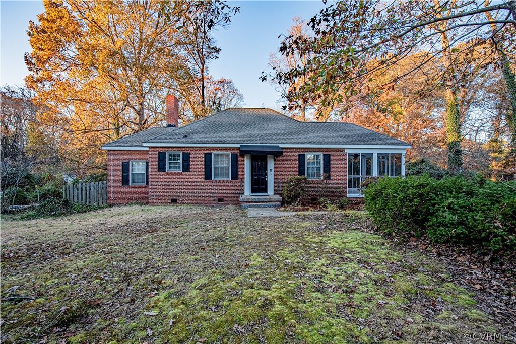 Charming mid century brick rancher sparkles with fresh paint, refinished floors and appliances that all convey- most of them new within the year! Perfect spot for a buyer looking for a workshop, studio or just great storage- a newly constructed 12x16 shed...just add power if needed. Even more storage in the fully floored pull down attic. Roof and HVAC approximately 4-5 years old. Hardwood floors throughout, painted concrete in laundry/utility room, and tile in the bathroom. Large open space for kitchen, dining and living area- and a door to the side screened porch. Sizeable lot has a fully fenced area for Fido, and two sheds- the large new one and a small wooden shed. Driveway is unpaved, with a concrete double width parking pad at the end of the driveway. The left side off the laundry area has a stone wall and small parking area for one car. Natural wooded area fronts Jahnke Rd for privacy. Easy access to major highways- Chippenham and Powhite...Chippenham Hospital just a couple blocks away...many shops, restaurants and services close to this location. Could be yours for the holidays!!