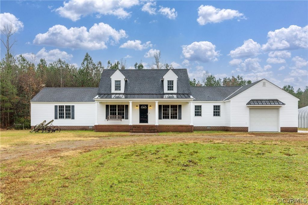 Don't miss this beautifully maintained cape style home on 27 acres of land in North Dinwiddie! Enter this magnificent estate through brick columns with private entry through your automatic gate, to a full country porch covered by a copper roof. Fully remodeled with high-end quality materials, such as teak hardwood and ceramic tile floors. Solid hickory cabinets and granite countertops with plenty of recessed lighting to accent this country style kitchen. The first floor contains an oversized primary bedroom suite with cove lighting, walk in closet, and a private bath. Walk up the stairs to be greeted by 2 bedrooms with a luxurious bath including a heated jacuzzi tub, granite countertops, and corner shower. Entertain your guest in the Florida room from your walnut wet bar on your one of kind rear porch. Do not hesitate, schedule your showing today!