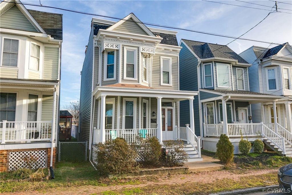 Beautifully updated Victorian with a 2-car garage in the heart of Church Hill. New roof (2021), siding (2018), H2O heater (2021), deck (2022), windows (2018), and 200amp electric panel (2021). Be greeted by 9+ foot ceilings and original heart of pine floors. Formal dining room features a chandelier and bay window offering plenty of light. Through pocket doors you will find the cozy living room, warmed by exposed brick and a wood-burning stove. The large eat-in kitchen has been renovated w/ slate tile, stainless steel appliances, and French doors leading to a brand new deck. The powder room on the 1st floor has been recently updated w/ wainscoting and a modern light fixture. Upstairs, you will find two spacious bedrooms w/ 9+ foot ceilings, brick mantles and closets. The additional room at the end of the hall would make a perfect office, nursery, or could be renovated to an additional full bath. The full bath on the 2nd floor is charming w/ original tile and updated fixtures. The backyard is spacious with a privacy fence and landscaped garden. Detached shed and automatic two-car garage complete the picture. Walk to Union Market, Cobra Burger, 8 1/2, Second Bottle, and more!