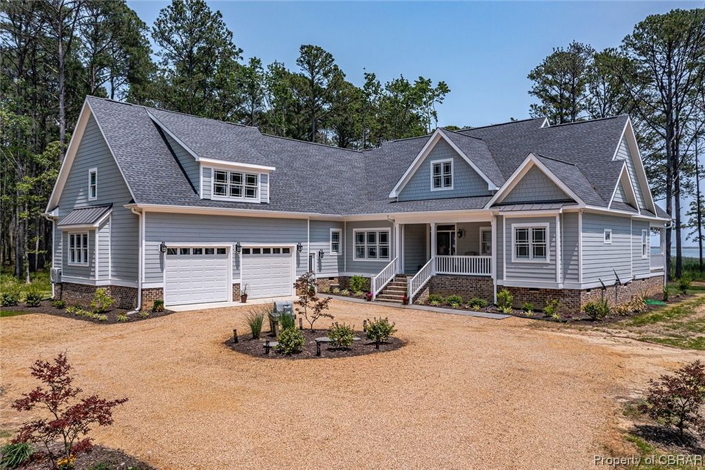 Brand NEW 4 bedroom custom built WF home with endless view to the Chesapeake Bay. Enjoy watching dolphins, sunrises, & sand beach! Salty air & lovely breezes off 647' of Composite decking or 238' of Screen Porch. Spacious open floor plan which offers 1-story living w/wonderful & comfortable entertaining areas. Living RM: coffered ceilings, views, & a stone gas FP open to a gourmet kitchen w/ island & quartz countertop w/a large Thermador 6 burner gas range & hood + opens to waterside dining & a large pantry. Primary ensuite BDRM: 2 WIC, & open to the waterside deck, & BTRM w/a large tile shower, spacious tub, double vanities. 2nd Ensuite BDRM: WIC & a bathroom w/granite countertop & a tile shower/tub. 3rd Ensuite BDRM: WIC & BTRM w/double vanities & a separate room w/a tile shower/bath combo. Family RM/office off Foyer that could double as a guest area w/private 1/2 BT. Large laundry RM: storage cabinets & sink. BDRM 4 is located over the attached garage & is HUGE w/BTRM. These 4+ acre lots offer plenty of privacy. Conveniently Kilmarnock w/great amenities & www.icycc.com - an 18-hole golf course, social event, tennis & +. More acreage is available. POOL Area & PIER Permit.