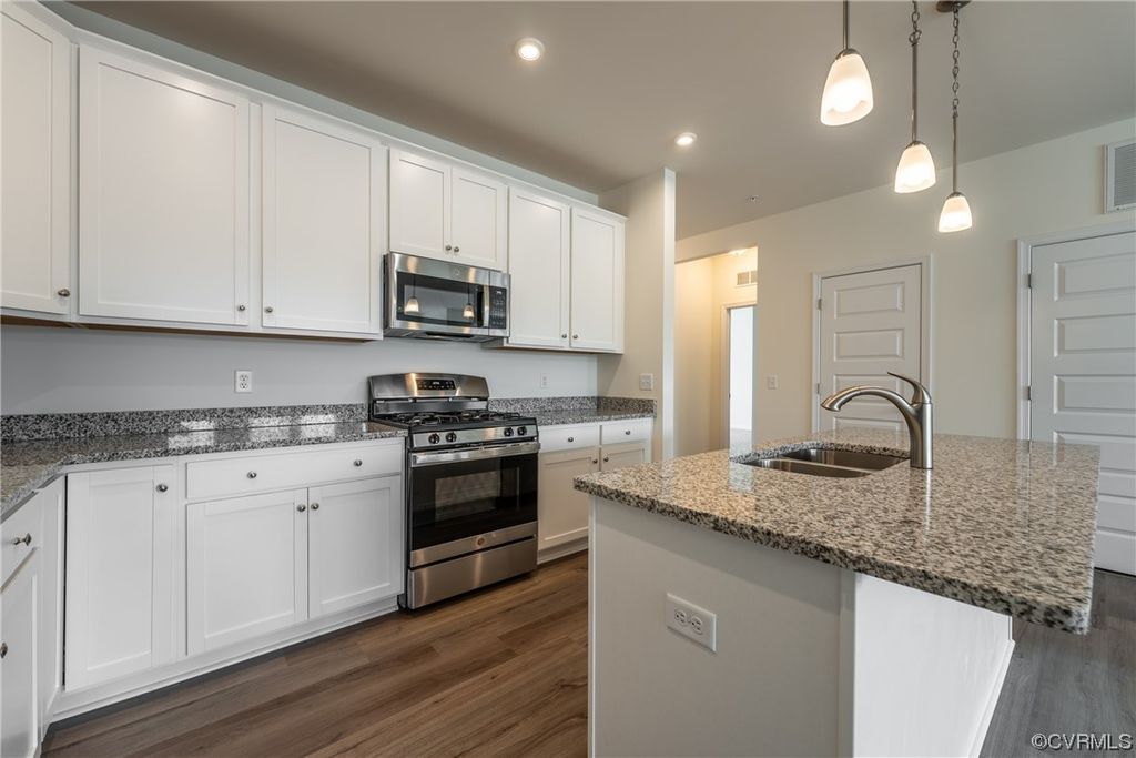 READY NOW! You'll enter the Winchester on the first floor, where you'll find the foyer with coat/storage closet and access to your 1-car garage. Just up the stairs, you find spacious ONE-LEVEL LIVING, a huge family room that opens to the dining area and kitchen, complete with large pantry space and island with granite counters. The Primary Suite has a large WIC and private bath with double vanity, walk-in shower with bench seat. Two additional bedrooms, a full bath with double vanity are also located on the second floor. Laundry is on the main living level. Quarterpath residents enjoy low-maintenance living in a prime location, near the area's best shopping, dining & recreation! Quarterpath is also just 45 min or less from of number of the area's military bases. (HOME IS READY NOW - Photos are of the actual home & visual tours are from the builder's library & shown as an ex only. Options will vary).