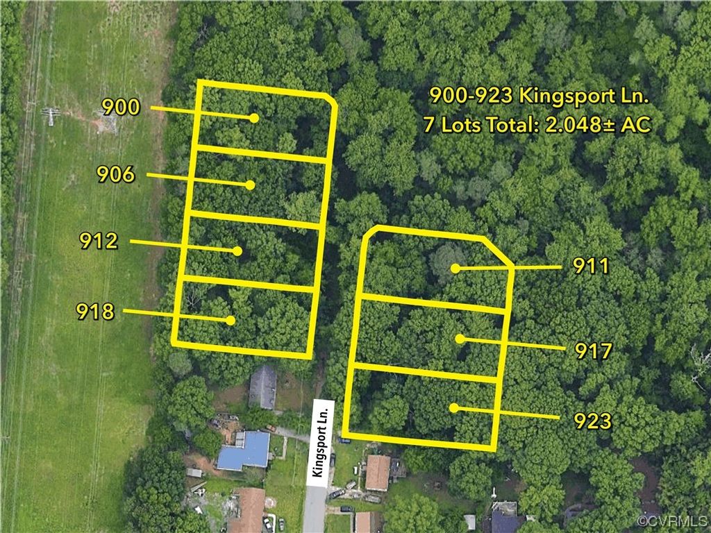 Located in North Chesterfield, VA - these 7 lots in the Southhaven subdivision have excellent potential. 900-923 Kingsport Ln. being sold in the entirety. Water, Sewer, & Natural Gas Available at the End of the Current Street. Prime location with easy access to Chippenham Parkway, Midlothian Turnpike, shopping centers & dining! You don't want to miss out on this prime building opportunity! This property is subject to Auction. The list price is not the selling price, but the opening bid. This property can be sold prior to the sale date with an offer that is acceptable to the Seller. This property is being sold completely "As-Is".