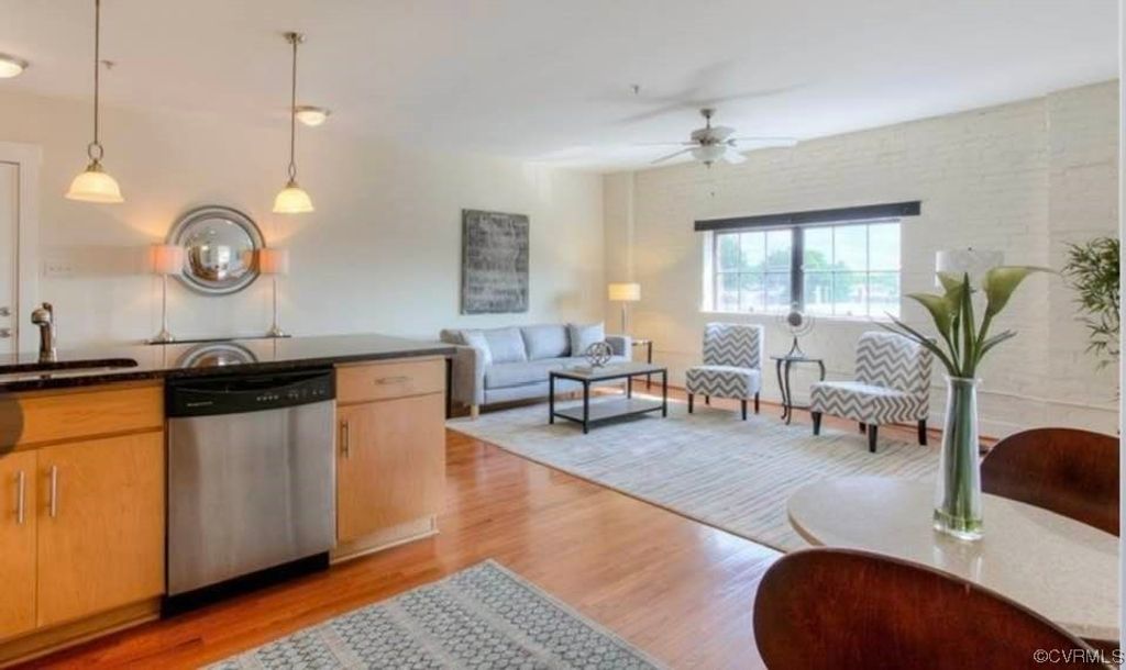 Right in the heart of the Fan! Here's your chance to fall in love with one of the larger one bedroom units in Hamlet Condominiums, a secure-access building with assigned parking! You'll appreciate the abundance of natural light, the open concept floor plan with spacious, eat-in kitchen, the hardwood floors throughout, the exposed brick in both the living spaces and bedroom, high ceilings, and an in-unit stack washer/dryer located in the utility closet off the kitchen. The primary bedroom has a large closet, ceiling fan and access to the bathroom which has tile flooring and a granite topped vanity. Conveniently located just outside the unit's front door, enjoy entertaining, and the city views, on the large rooftop deck. Newer HVAC 2020. All within blocks to dozens of Richmond's best restaurants, bars and entertainment along with Museums and Carytown shopping.