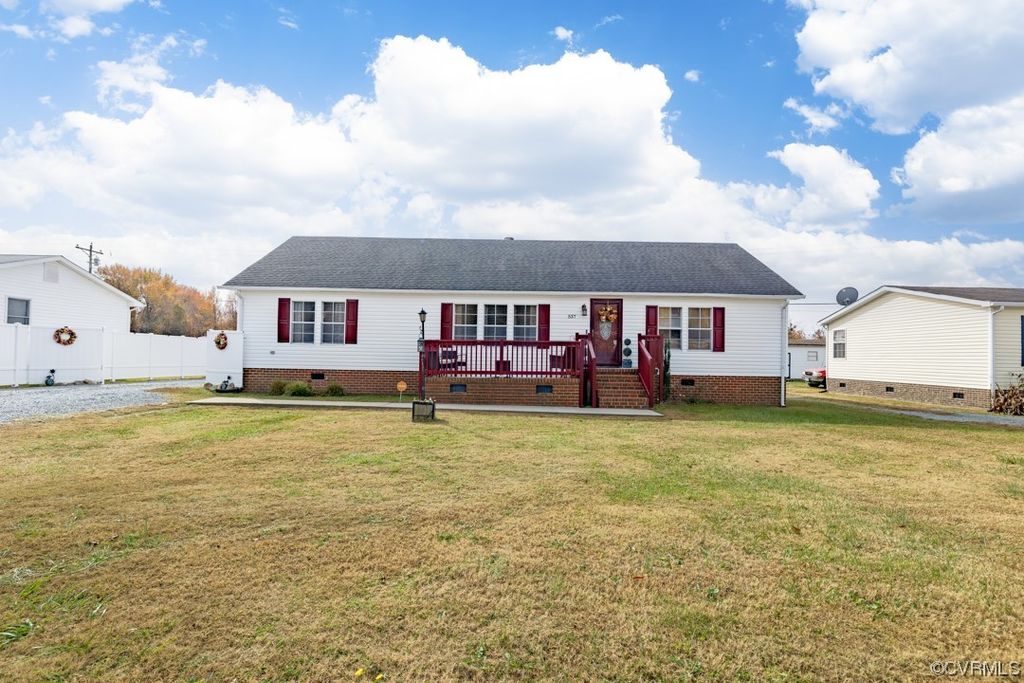 Spacious 4 BR and 3 Full Bath Ranch on a large level lot offers many exciting extras. Two of the baths have just been renovated ... the primary bedroom bath now has a new double vanity, large corner soaking tub along with a separate shower. You will love the attractive wood paneled walls! The hall bath has now been done in ceramic tile with a new vanity and new walk-in shower stall. Gorgeous! Enter the home into a huge great room with laminate floors, ceiling fan and gas fireplace. Walk through a dining area and into the 15' x 19' family room that also has laminate floors and crown molding. The primary bedroom includes laminate flooring and a walk-in closet. There is a bedroom on the back of the home with it's own full bath. The attractive kitchen includes a refrigerator and smooth top range. There is a 16' x 24' rear deck perfect for entertaining your friends. A 2 car carport will protect your vehicles from the elements and a huge detached outbuilding is ideal for your storage needs or setting up a workshop. Low maintenance vinyl siding helps complete the package and makes this one you will definitely want to see!