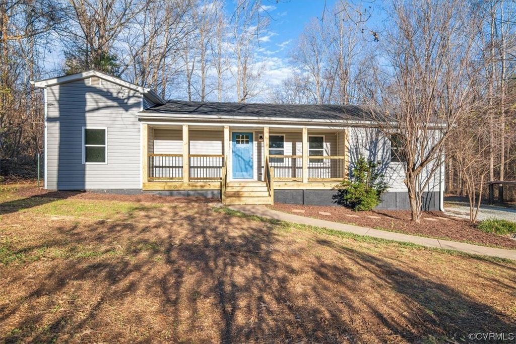 Price Reduced! Spacious renovated ranch house on a private lot. The exterior has new vinyl siding, windows, and roof with new country front porch and oversized partially covered rear deck. The inside has an open kitchen concept to the family room with large island, granite tops, new cabinets, backsplash, new stainless appliances, large pantry and broom closet. All new LED lighting throughout house with over 40 recessed lights, new outlets and new plumbing fixtures with all new waterproof laminate flooring. The primary bedroom has a 5 x 13 walk-in closet and ceramic tile bath with double vanity, linen closet and tub/shower with tile accent shelf. Bedroom 2 has built in bookshelves and entrance to a shared bath which has ceramic tile and a tub/shower with a tile accent shelf. Bedroom 3 has a large walk in closet with plenty of recessed lights and laminate flooring. The newer well and conventional septic system has been tested and serviced. This is like walking into new construction and a must see!