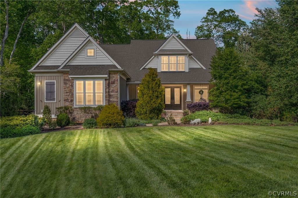 Welcome to 14106 Chiasso Terrace: an architecturally-rich, custom craftsman-style property with 5 bedrooms and 3.5 bathrooms including a luxurious first-floor primary suite. Immaculately kept and situated at the end of a culdesac on over an acre of lush landscaping with a private path to your own wooded area, you enter your new home through double french exterior front doors on the expansive front porch. All hardwoods are newly refinished. Formal dining and living rooms greet you, yet your eye is drawn to the craftsman wall-of-windows in the family room with a view to your natural paradise featuring a perfect balance of landscaped garden and natural forest. The kitchen boasts granite countertops, marble mosaic-style backsplash, stainless steel appliances, a large island in a contrasting design color and a large butler's pantry with 2 wine refrigerators. From the spacious breakfast area, step onto your covered porch with composite decking and a ceiling fan. Multiple custom patios expand your entertaining options! First floor primary suite has newer, upgraded carpeting, separate double vanities, a private watercloset, a frameless glass custom shower door, linen closet, and a walk-in closet with dressing area. The spacious laundry room is flanked with cabinetry and hanging space. Even the laundry room has a great view to the lush lot! Family Room offers a custom flagstone gas fireplace with custom built-ins. Upstairs, there are 4 bedrooms and 2 full bathrooms. Bedrooms 2 and 3 are connected by a Jack and Jill-style bathroom with double vanities and a private shower room. Bedrooms 4 and 5 are large like bonus rooms and include access to additional unfinished attic storage space. The full bath in the upstairs hallway provides perfect privacy for guests. The oversized, 3-car side load garage features automatic door openers so that entering the garage from the long, private and paved driveway is a breeze. This home balances the comfort of craftsman styling with elegant upgrades that make gracious entertaining possible.