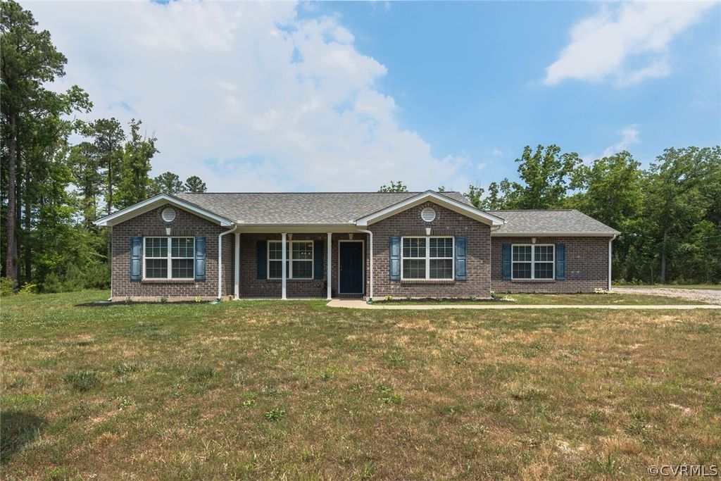 Welcome to this charming all brick ranch-style home offering convenient one-level living, situated on a sprawling 3.5-acre lot in desirable Powhatan County, near the Chesterfield county line. Built in 2018, this meticulously maintained residence boasts modern comforts and spacious accommodations, making it an ideal retreat. The main house features 3 bedrooms and 2 full bathrooms across 1751 square feet of well-appointed living space. Recently updated with new paint and flooring, the interior exudes a fresh and inviting atmosphere. Spacious 20' x 21' office/study with custom desk & cabinets. A highlight of the home is the expansive 35' x 25' concrete patio in the rear, perfect for outdoor entertaining and enjoying the serene surroundings. Adjacent to the main house is an impressive detached studio offering an additional 800 square feet of finished space. This versatile area is equipped with central HVAC and a separate 200 amp electrical service, making it ideal for a home office, art studio, or guest quarters. For those with hobbies or needing ample storage, there is a spacious 30' x 40' oversized detached garage with 1200 square feet of space. It features energy efficient led lights, custom shelving, electrical outlets, two 10' x 10' garage doors and a concrete driveway, providing plenty of room for vehicles, equipment, and projects. Additionally, a 20' x 21' carport offers covered parking and additional storage options. Located close to highways, shopping centers, and parks, this property combines the tranquility of rural living with the convenience of nearby amenities. Whether you're relaxing on the patio, working in the studio, or enjoying the spacious interiors, this home offers a rare opportunity to live comfortably and stylishly in a coveted location. Don't miss out on the chance to make this exceptional property your new home. Schedule a tour today to experience all that this beautiful ranch-style estate has to offer!