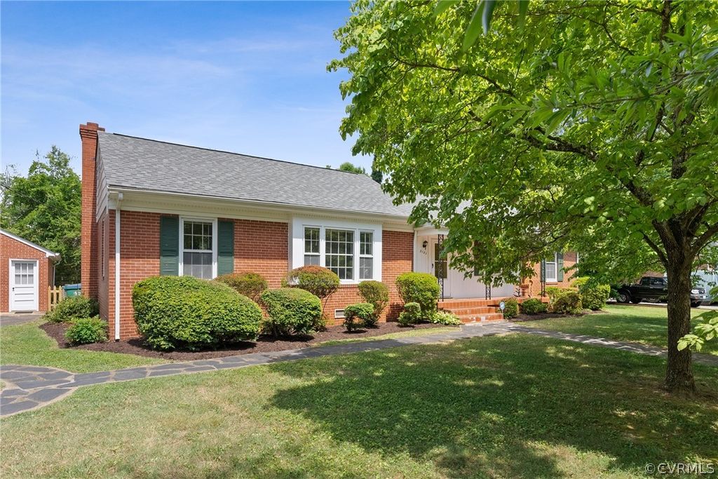 Amazing brick rancher, on a wonderful cul-de-sac and great location! Minutes from Stony Point Shopping Center, Stony Point Fashion Park, Chippenham Parkway, and so many great restaurant options. This charming home has 3 bedrooms, 2 baths with 1,594 sq ft, with a huge, private back yard, nice sized back patio, 1 car garage with extra room and shelves, front porch and all one floor living!! Lovely foyer welcomes guest with hardwood floors, coat closet and opens to living room. Living room has hardwood floors, recessed lights and an amazing picture window giving tons of natural light and beautiful, serene view. Dining room has hardwood floors, chandelier, chair rail and that great open flow with the living. The charm continues as you step into the family room with the lovely woodburning fireplace, with white painted brick, carpeting, a ceiling fan with a light, door to amazing back patio makes it easy for entertaining or just take time and relaxe and enjoy for yourself. Kitchen opens to family room, it has white cabinets, recessed lights, wall oven, electric cooking, a stove hood with exhaust fan, laminate counters, stainless steel double bowl sink with a window overlooking the backyard. Primary bedroom with hardwoods, ceiling fan with a light, double door closet and it's own private ensuite! Ensuite offers a walk in, tiled shower and single bowl sink. Two additional bedrooms with hardwood floors, overhead light fixtures and double door closets. The hall bath has a single sink vanity and tub/shower combination. Nice sized laundry room with cabinets and door to back yard. Brand new roof installed June 2024!! Book your showing today and come fall in love with all this home has to offer!