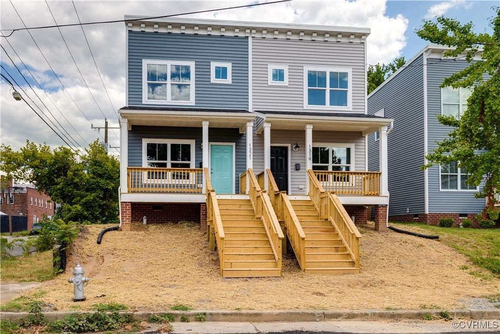 Welcome to 1321 N 21st St a gorgeous new build in Church Hill featuring 2 bedrooms, 2.5 baths and nearly 1,200 SF of living space with a nice sized back yard and alley access! Around the corner from Lucks Field, The Market at 25th ST, Rise Cafe, and minutes from downtown, shoppes, restaurants and parks this is a great location! Walk onto a fully covered front porch and into the bright and spacious living room with sight line into the kitchen and eat in area and featuring recessed lighting, ceiling fan and Western exposure for great natural light all day. Kitchen boasting granite counter tops, SS Appliances, shaker style cabinets with a larger pantry and an eat in area. Nice sized eat in area off the kitchen is perfect for entertaining guests. Dueling suites on the 2nd floor both feature larger closets, overhead lighting, LVP flooring and ensuites! Both full baths feature larger vanities with good counter top space, tub/shower with tile surround and transoms for natural light!