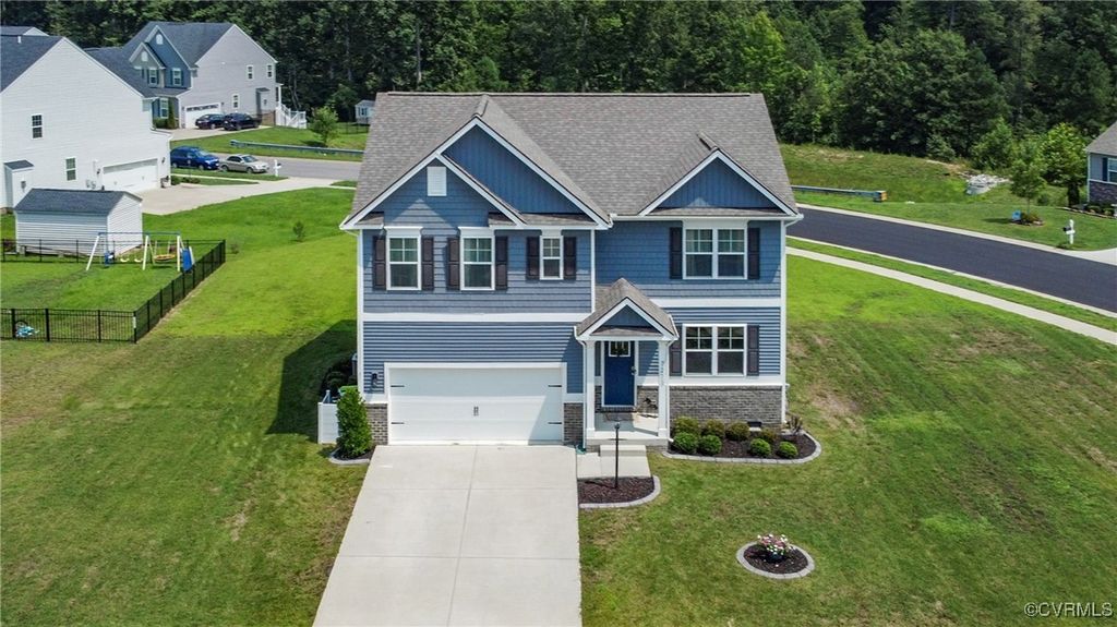 Welcome to 7211 Cress Terrace in The Arbors of New Kent Winery. This exquisite 5-bedroom, 3-bathroom home exudes an earthy aesthetic that seamlessly blends nature and modern comfort. As you step through the front door, you'll be greeted by a warm and inviting atmosphere, where natural materials and soothing colors create a peaceful retreat from the outside world. As you enter, immediately to your right is a flex room that has limitless opportunity. Currently a sitting room, but it has potential for a dining room or an office. The open concept kitchen features a large island, granite countertops, a walk in pantry, and more! Each of the five bedrooms is a private retreat, adorned with natural wood finishes and neutral tones. There is a bedroom on the first floor off of the living space for easy access and enjoyability. The master suite is a true haven, featuring a spacious layout, multiple walk in closets, and an en-suite bathroom. The home boasts three full bathrooms five total bedrooms. Outside, the yard offers a tranquil escape with its thoughtfully designed deck for entertaining, and cozy outdoor seating areas. Whether you're enjoying a morning coffee on the deck or hosting a gathering under the stars, the outdoor space is an extension of the home's serene and earthy charm. The neighborhood's amenities include a pool, playground area, clubhouse and more; ideally located within 1.5mi of the interstate 64 interchange. Experience the perfect blend of nature and modern living in this remarkable home. Every detail has been carefully crafted to create an inviting environment, making it the ideal place to call your own.
