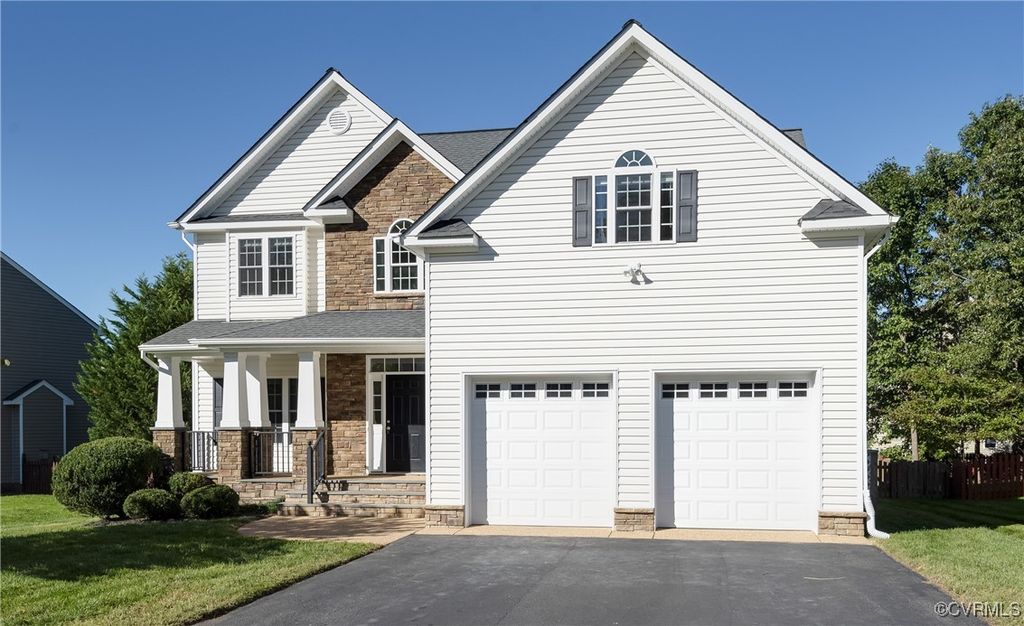 This magnificent two-story home near Swift Creek Reservoir with a 2 car garage is an absolute must-see! With its stunning partial-stone siding, along with relaxing front porch, this home radiates curb appeal. Inside, the first floor boasts gleaming hardwood floors and 9 ft ceilings, creating a bright and spacious feel. The dining room is complete with a beautiful cove ceiling, and the kitchen is a chef's dream, offering granite countertops, a large island, and a double door pantry. The inviting living room features an oversized gas fireplace and neutral tones throughout. Upstairs, the luxurious primary bedroom offers expansive his-and-hers walk-in closets and a spa-like en suite bath that's sure to impress. All bathrooms are tastefully designed with tile floors and neutral finishes. Step outside to a large, fenced backyard, perfect for entertaining, or enjoy relaxing on the front sitting porch. Located near the Swift Creek Reservoir and close to dining favorites like The Boathouse and The Grill at Waterford, this home is the complete package!