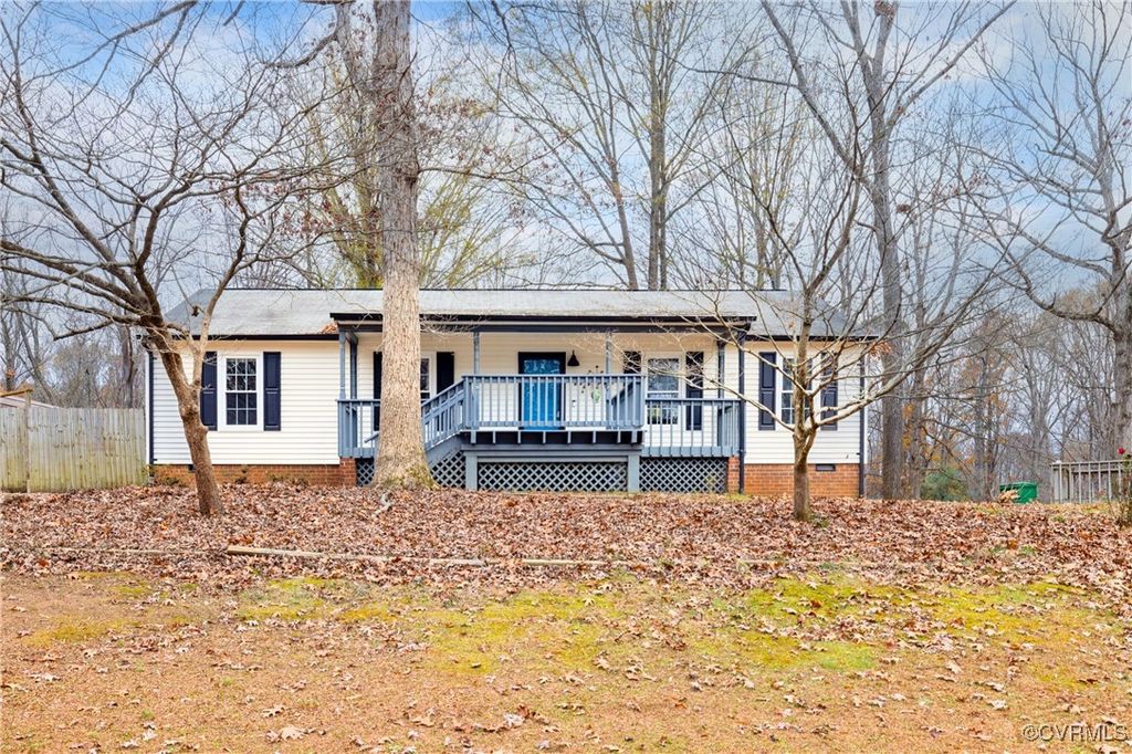 Beautiful Move-In Ready Rancher! This single level home offers 3 bedrooms, 2 full bathrooms and is nestled on a quiet cul-de-sac. The large front porch warmly welcomes you into the open-concept living space, designed to make entertaining friends and family effortless. The kitchen is a chef's delight, boasting stainless steel appliances, butcher block counters, a large island with barstool seating, and an adjacent laundry room with ample shelving for added storage. The dining area comfortably accommodates gatherings of any size, while the living room features a beautiful brick fireplace with a wood stove and mantel, perfect for cozy evenings. Through the French doors you'll find an enclosed sunroom, currently set up as a gardener's dream greenhouse but easily convertible back to a comfortable space to enjoy your morning coffee. Down the hall, the primary bedroom offers a private ensuite bathroom, while two additional nicely sized bedrooms share a second full bath. Outside, the freshly painted back deck provides the perfect place to unwind, overlooking the fenced backyard with plenty of space for outdoor activities. This home also features an attached storage shed and a pull-down attic for even more storage options. Additional updates include a NEW water heater, New Kohler toilets, and more! Situated in a prime Chesterfield location, this home offers the peace of a quiet neighborhood while being just minutes from shopping, dining, schools, and major highways, making it convenient for any lifestyle. Come see all this home has to offer and schedule your tour today!