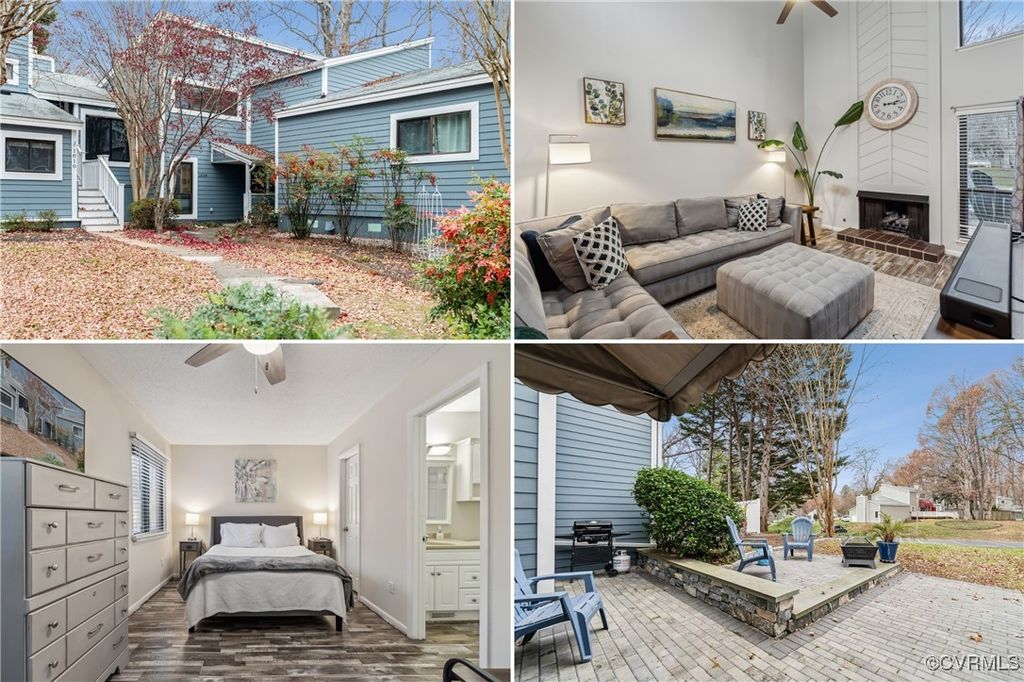 MAINTENANCE-FREE TOWNHOME IN HIGHLY SOUGHT-AFTER IVYSTONE VILLAGE OF RAINTREE! Welcome to this beautifully updated 3 bedroom, 2 bathroom townhome that combines modern upgrades with effortless comfort. As you enter, you'll be greeted by newer wood laminate flooring (2020) that flows throughout the entire home. The inviting living room boasts a dramatic 2-story vaulted ceiling, a cozy gas fireplace, and a charming feature wall that adds character and warmth. The kitchen is both functional and stylish, offering maple cabinetry, a newer sink (2020), newer garbage disposal (2020), and matching appliances that convey. The bright dining area features French doors leading to an outdoor patio, perfect for seamless indoor-outdoor living. The first floor bedroom is ideal as a primary suite or home office, complete with a large closet and ensuite bathroom. Upstairs, you'll find two additional generously sized bedrooms sharing a Jack-and-Jill bathroom and second floor laundry adding convenience to your daily routine. You'll love relaxing or entertaining outside on the stunning new brick patio (2022), thoughtfully redesigned with brick pavers, stone cobbles, and granite stone blocks"”a perfect retreat to unwind at the end of the day. Additional features include an attached storage shed and numerous upgrades from 2020, including new ceiling fans, light fixtures, bathroom vanities, and updated bathroom lighting. Enjoy the convenience of two assigned parking spots and ample visitor parking, as well as HOA-provided exterior maintenance, ensuring peace of mind for years to come. With an optional membership, you can access the Raintree Swim and Racquet Club, which includes a pool and tennis courts. Conveniently located near Patterson Avenue and Short Pump, this home offers easy access to an array of shopping, dining, and entertainment options. Don't miss the opportunity to call this charming townhome your own"”schedule a showing today!
