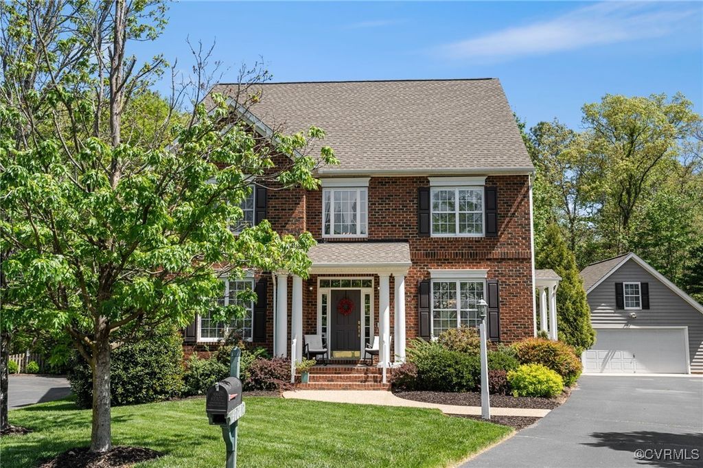 This move-in ready brick-front home is tucked away on a cul-de-sac in the heart of Twin Hickory, backing to 6 acres of protected woods for exceptional privacy. With over 3,300 square feet across three finished levels, it offers space, style, and flexibility. A two-story foyer with a balcony overlook welcomes you, flanked by a formal dining room with detailed moldings and a home office with French doors. The open family room features built-in bookcases, plantation shutters, and a gas fireplace, and flows into the eat-in kitchen with granite countertops, stainless steel appliances, cherry cabinets, a center island, recessed lighting, two pantries, and a built-in wine rack. Upstairs, the spacious primary suite offers two walk-in closets and a luxe bath with jetted tub, walk-in shower, and double vanity with leathered quartzite counters. Three additional bedrooms and a hall bath complete the second level. The third floor includes a fifth bedroom, full bath, and a versatile living area"”ideal for guests, teens, or in-laws. The fenced backyard is one of the best in Twin Hickory, with an aggregate patio, fire pit, and detached two-car garage with overhead storage. Additional features include a new roof (2018), brand new water heater (2025), newer AC, fresh interior paint, walk-in attic storage, surround sound, and irrigation system. All just minutes from Short Pump and part of the sought-after Twin Hickory community. Don't miss this rare opportunity"”schedule your showing today.