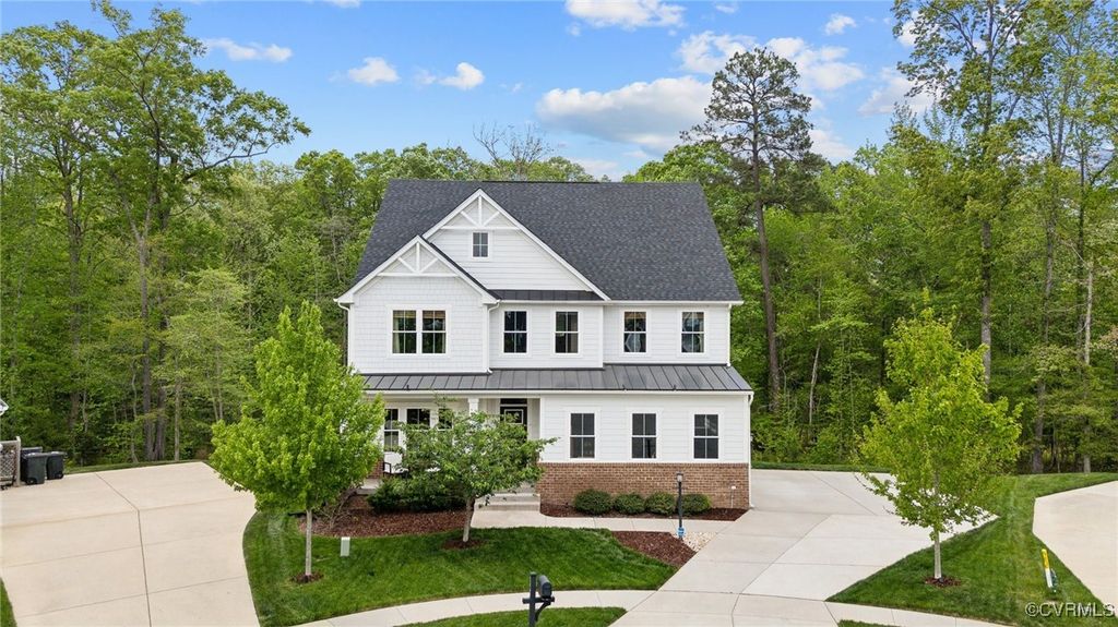 CHARMING HOME WITH FULL BASEMENT BACKING TO SERENE WOODS & RIVER VIEWS. Welcome to your private retreat just steps away from walking trails & access to the James River! Nestled in the premier community of Tarrington & backing to a lush, wooded backdrop, this beautifully maintained home offers the perfect blend of comfort, space & natural beauty. Step inside to find a warm & inviting layout w/ hardwood flooring, spacious living areas & thoughtful updates. Greeting you at the front door is a moody living room w/french doors & space to unwind & relax. The formal dining area showcases custom trim work on the walls & a modern chandelier to set the mood for entertaining friends. Continue into the open family room adorned w/a gas fireplace & flowing nicely into your spacious eat-in kitchen, the heart of the home! Beautifully upgraded w/a large center island, sleek quartz counters, SS appliances & backsplash, this kitchen combines style w/functionality. An office & powder room complete the 1st floor. Upstairs, relax & unwind in the expansive owner's suite showcasing dual walk-in closets & a spa-like bathroom w/dual vanities & an impressive tiled shower. Three additional bedrooms, a private bath & jack-n-jill, spacious loft & laundry room complete the 2nd floor. The full basement provides versatility"”ideal for a gym, rec room, storage or even a future guest suite. There is even a hidden room through the storage area, giving those modern-day speakeasy vibes! A full bath, future wet-bar rough-in & doors to your outside oasis complete this basement level. No details left untouched with backyard porch, patio, fire pit & koi pond! Enjoy the unmatched lifestyle Tarrington offers w/resort-style amenities-a clubhouse, pool, fitness center, playgrounds, scenic walking trails, direct access to the James River & more. With no neighbors behind you, you'll love the peaceful, secluded feel while still being just minutes from shopping, dining, schools, Robious Landing Park & Rt.288. Don't miss your chance to own a piece of tranquility!