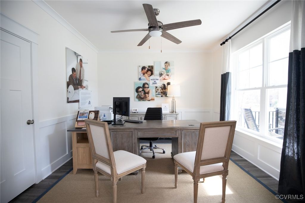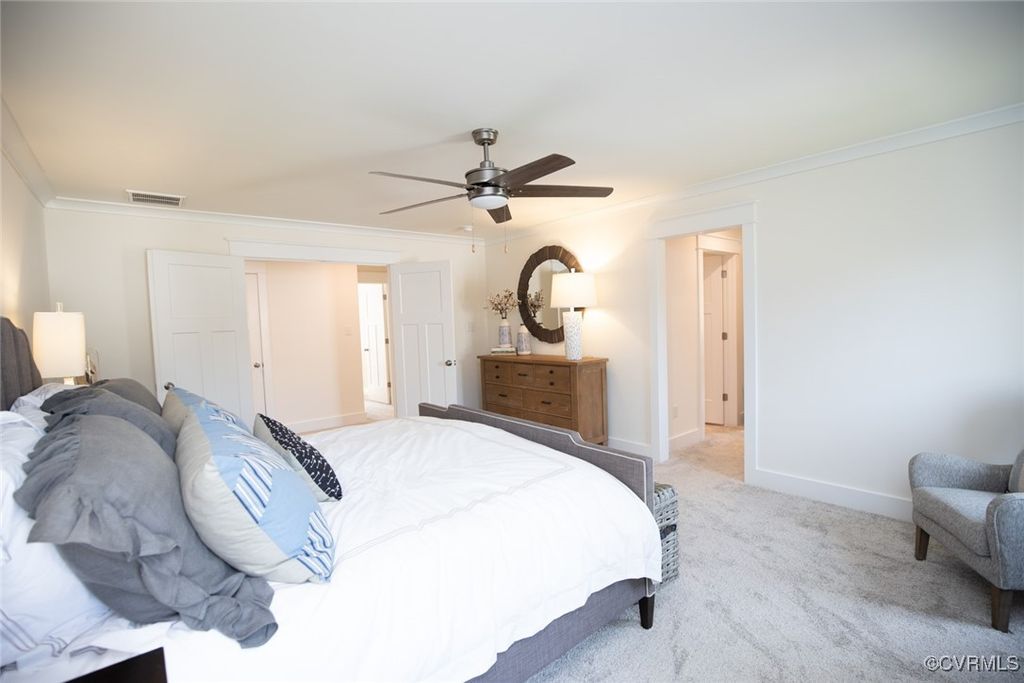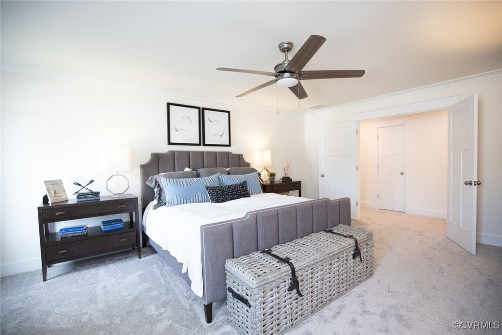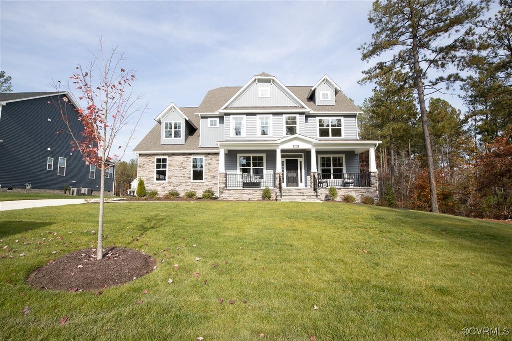 MOVE-IN READY!! This 5-bedroom, 4.5 full-bath home in the Glen Royal section of Harper's Mill community is filled with upgrades! A formal dining room and a home office with glass French doors is situated directly off of the entryway. The kitchen with quartz countertops, an island, pantry, gas cooking, stainless steel appliances, LED recessed lighting, and adjoining breakfast area is open to the spacious family room with gas fireplace and ceiling fan. The FIRST-FLOOR GUEST SUITE includes a double door closet and an ensuite bath. A rear deck and a powder room for guests complete the first floor. Traveling upstairs you'll find a spacious loft that makes a great secondary entertainment area. Retreat to your private sanctuary: the primary suite offers dual walk-in closets and an ensuite LUXURY bath with soaking tub, walk-in shower, separate vanities, linen closet, and water closet. Bedrooms 2 and 3 both feature walk-in closets and share a Jack and Jill bath. Bedroom 4 has direct access to a full hall bath. Enjoy all the amenities Harpers Mill offers, including an Olympic-size swimming pool, splash park, soccer complex, and walking trails!