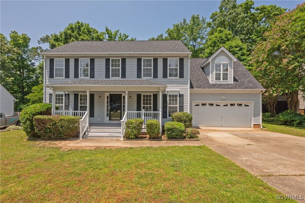 Pristine Condition. The tour starts with the comforts of a full porch a perfect spot for relaxing with a good book. Freshly painted for market with a great open floor plan. This home features hardwood floors throughout first floor and carpet on the second level. Formal rooms include a living room and dining room great for entertaining family and friends. The family room has a gas fireplace and easy access to the main level rooms. The kitchen has granite counter tops a tile backsplash and all appliances convey. A sunny breakfast noon with a bay window for easy quick meals. The primary bedroom has a large walk in closet, full bath and an attached sitting area with multiple options for usage. Three additional bedroom all with large closets and access to a full hall bath. There is a privacy fence in the back yard with a 16x16 Deck for entertaining and relaxing. full front porch